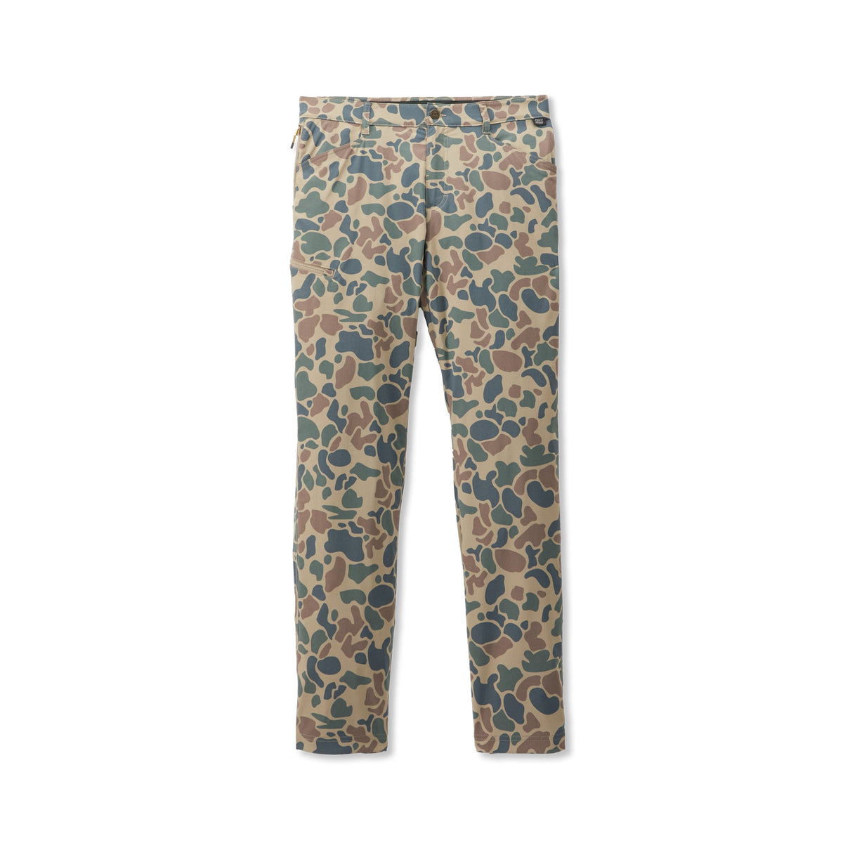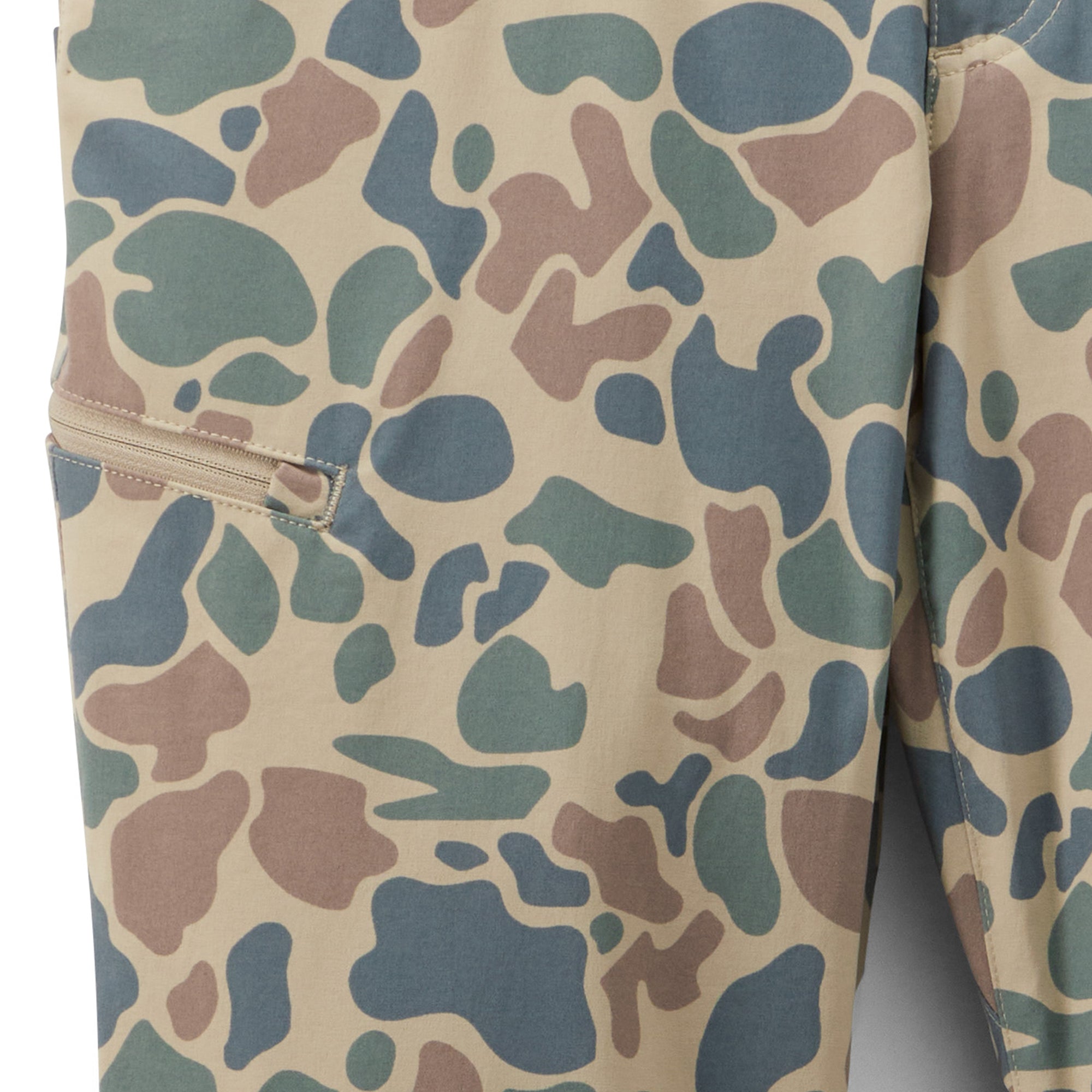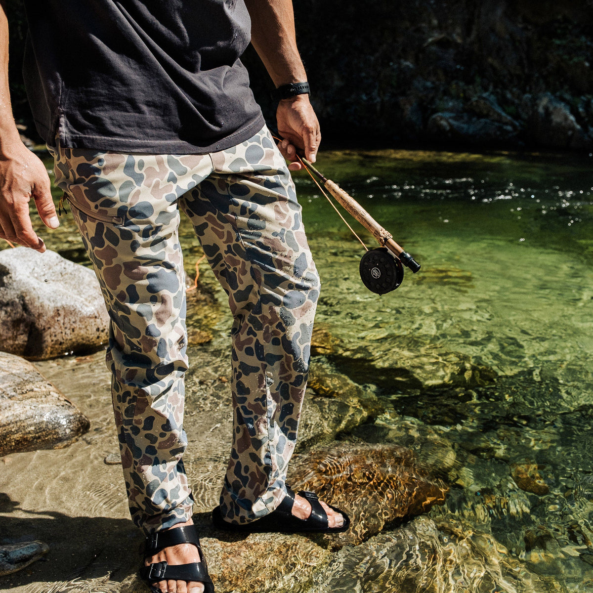 These hard-working performance fishing pants are perfect for the everyday angler but work just as well off the water. Made of nylon for extra durability and reduced shrinkage, Spandex for added stretch and recovery). Lots of features: double-needle stitches, two top front pockets, zippered thigh pocket on wearer’s right side, hidden zipper pocket behind right hip pocket for cell phone (7 inches deep), rear envelope pockets to secure goods and make entry ease, two grommets in pockets for water or sand to leak through, reinforced pocket bottoms – sewn over for longer durability. The elastic waistband and gusset at crotch help these pants move with you.