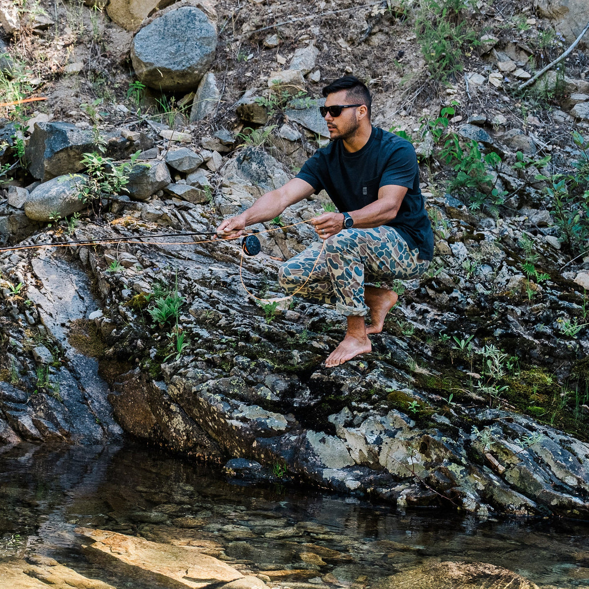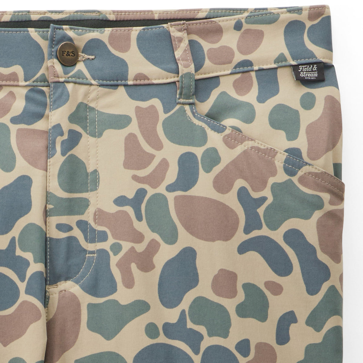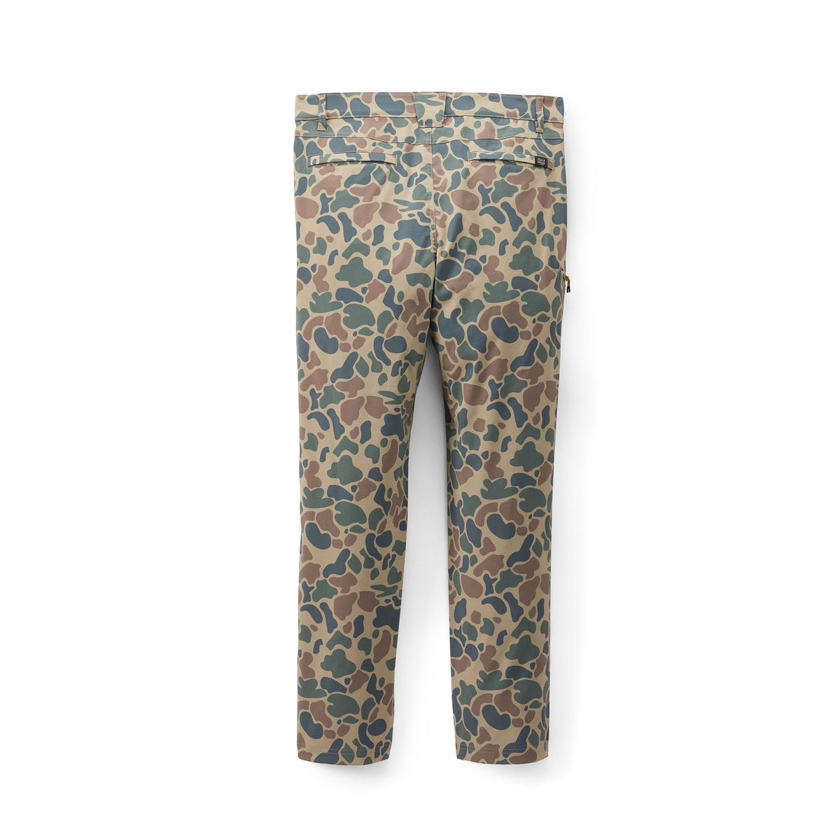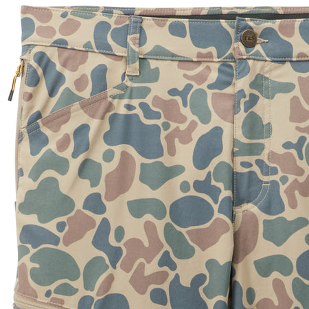 These hard-working performance fishing pants are perfect for the everyday angler but work just as well off the water. Made of nylon for extra durability and reduced shrinkage, Spandex for added stretch and recovery). Lots of features: double-needle stitches, two top front pockets, zippered thigh pocket on wearer’s right side, hidden zipper pocket behind right hip pocket for cell phone (7 inches deep), rear envelope pockets to secure goods and make entry ease, two grommets in pockets for water or sand to leak through, reinforced pocket bottoms – sewn over for longer durability. The elastic waistband and gusset at crotch help these pants move with you.