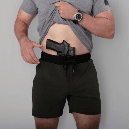 The shorts also feature an upgraded Carrier Retention Waistband with additional room for appendix carry and more comfortable holster placement options. Our patented Waistband will securely support compact to full-sized handguns in IWB holsters at any position around the waist.
