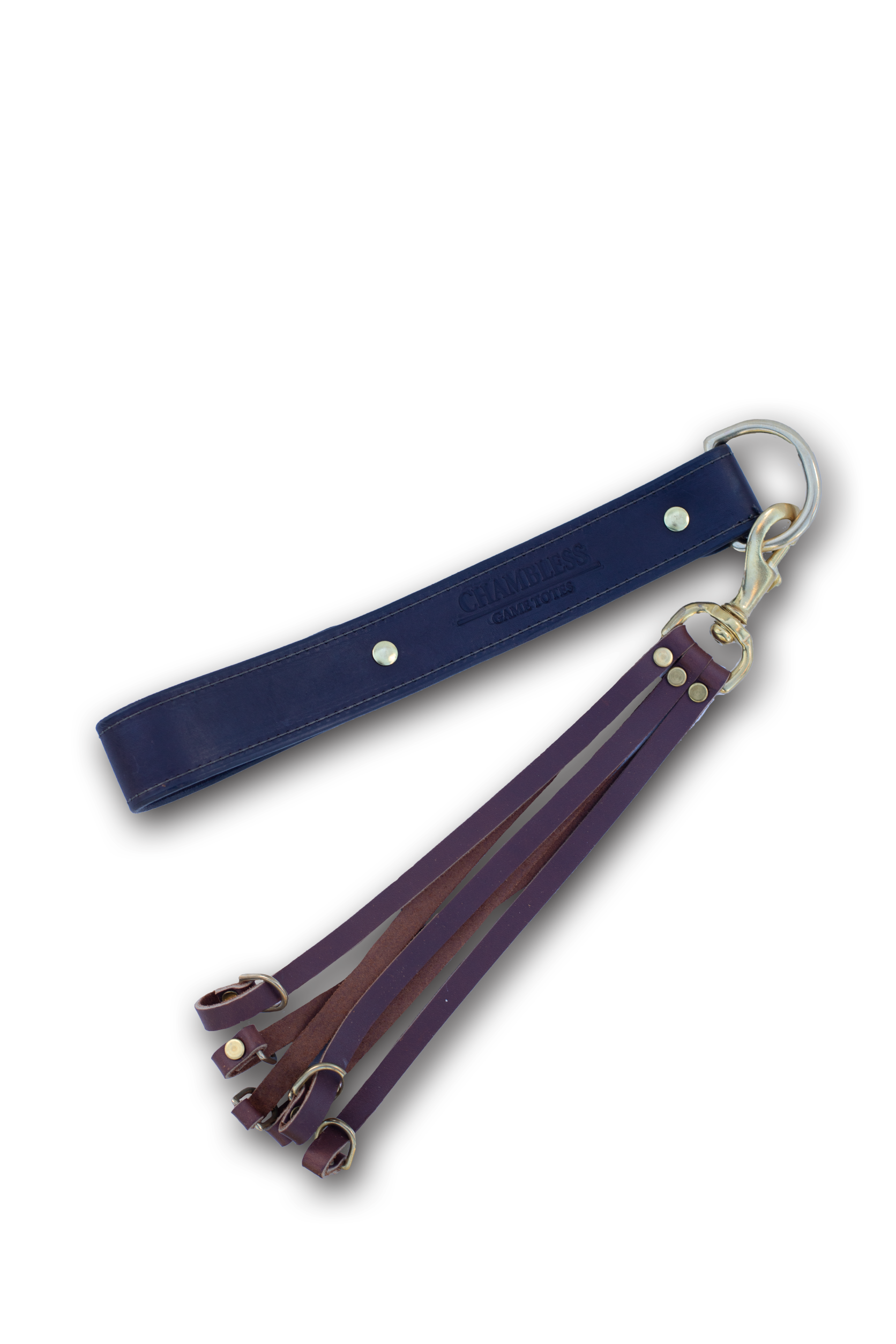 Duck carrier tote made with a stitched English Bridle Leather strap and a Solid Brass D Ring. Comes with six leather drops on a detachable 1-inch snap swivel, and 1-inch Solid Brass Cinch Ring on all six 10-inch leather drops.