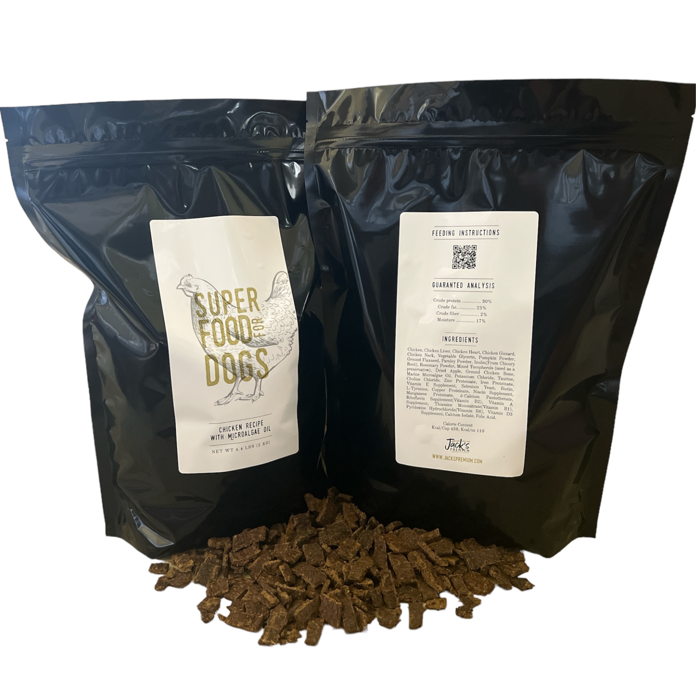 Jack's Premium air-dried food is an all-natural recipe cooked low and slow to lock in majority of the of nutrients. This feed is a complete and balanced meal with meat and organs with added vitamins and minerals. It can be fed as sole diet or mixed with any other food for an extra-tasty meal!