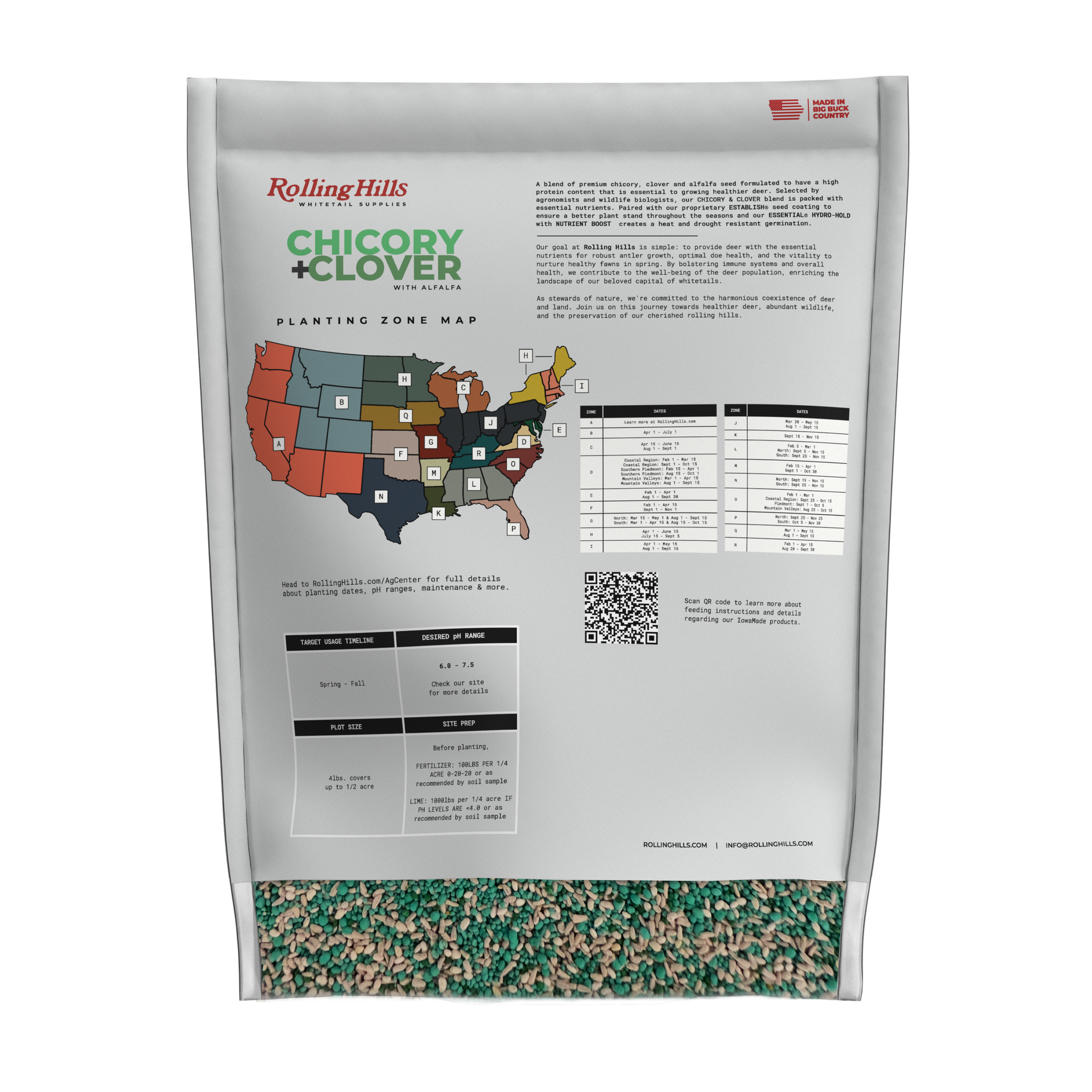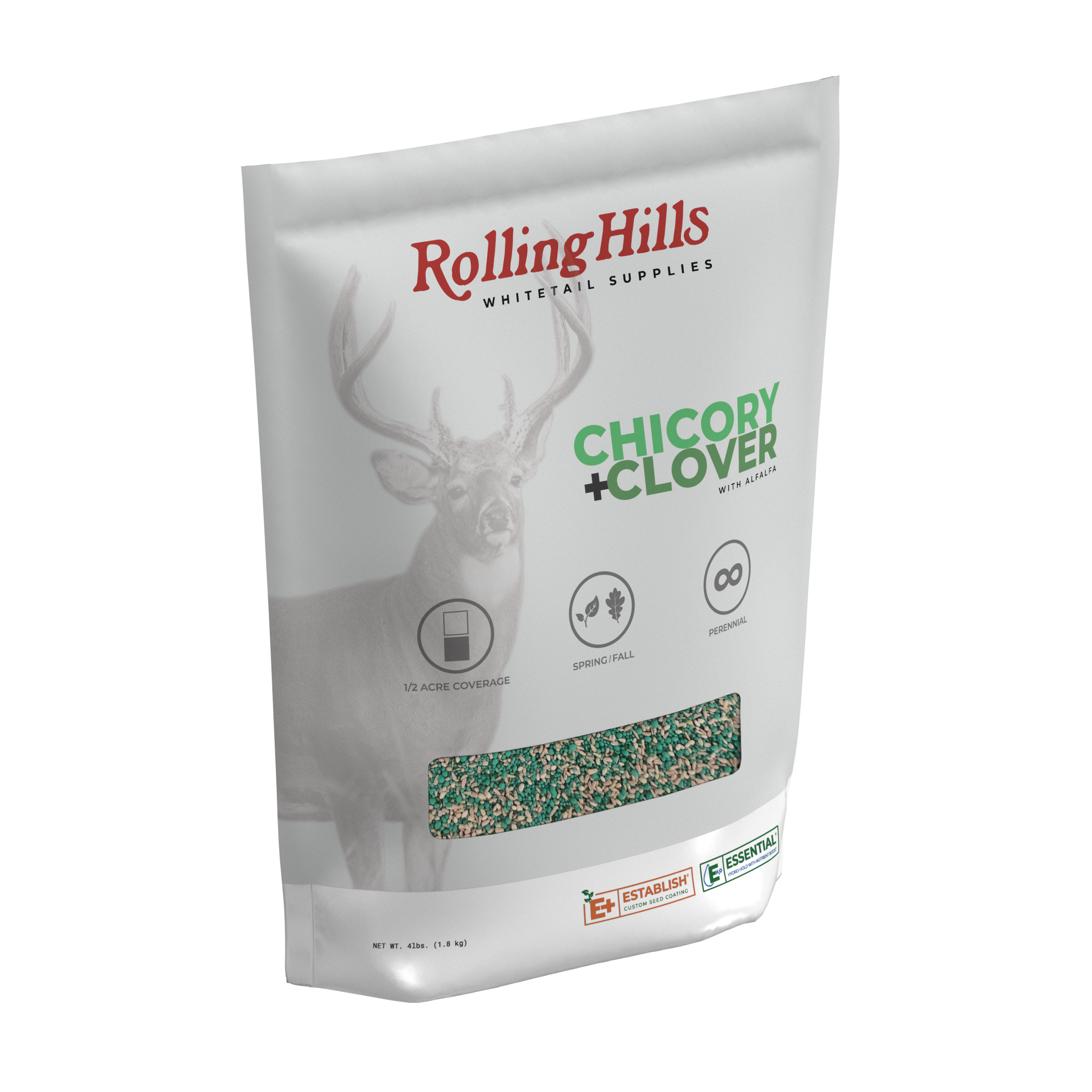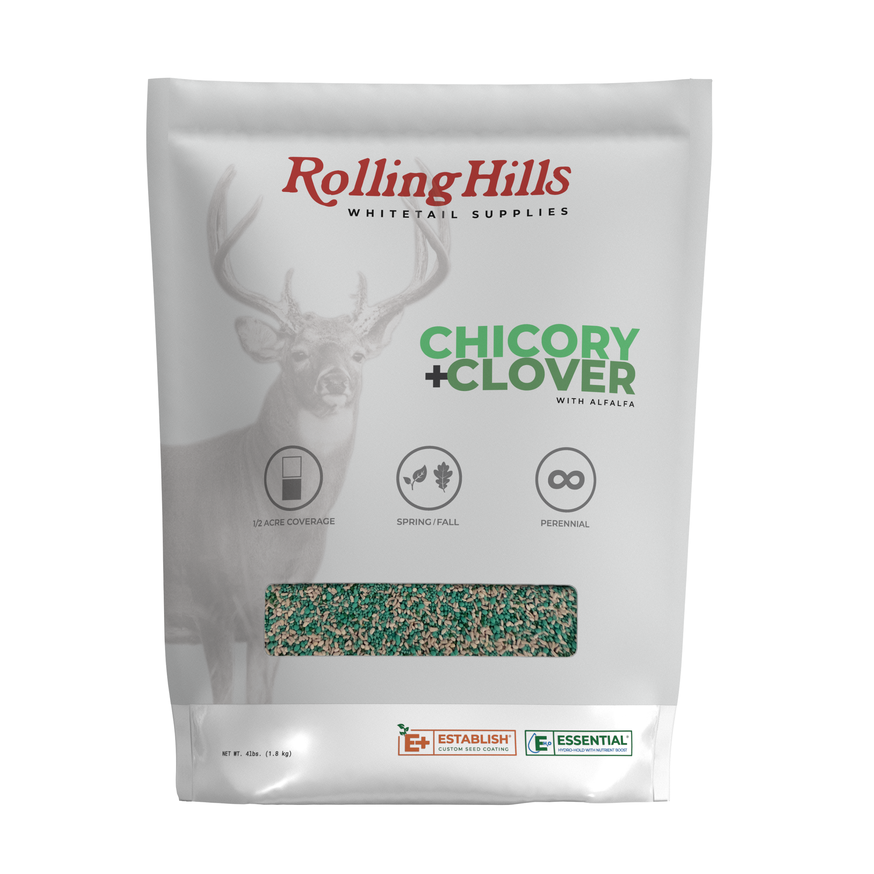 A blend of premium chicory, clover and alfalfa seed formulated to have a high protein content that is essential to growing healthier deer. Selected by agronomists and wildlife biologists, our CHICORY & CLOVER blend is packed with essential nutrients. Paired with our proprietary ESTABLISH® seed coating to ensure a better plant stand throughout the seasons and our ESSENTIAL® HYDRO-HOLD with NUTRIENT BOOST creates a heat and drought resistant germination.