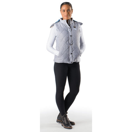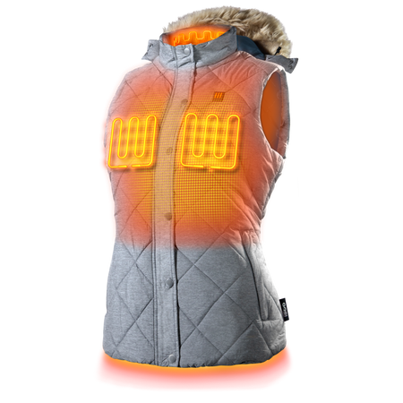 The Cirrus Women’s Heated Vest is Gobi Heat’s ultimate luxury option. Designed for those who demand the best in warmth and style, the Cirrus vest starts with a quilted melange outer shell available in two sophisticated colors: Stone Grey and Cloud Grey. This vest features a unique removable faux fur hood, providing you with the flexibility to adapt to wet environments or warmer days, setting it apart from our other offerings.