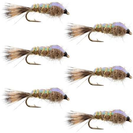- Set of 6 Weighted Flashback Gold Ribbed Hare's Ear Nymph Flies - Hook Size 16