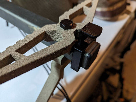 Amsteel Rope Spooler for 1" square tube climbing sticks. The bracket can go anywhere on a 1" stick. Pictured with bracket are XOP climbing sticks (amsteel rope and stick not included).