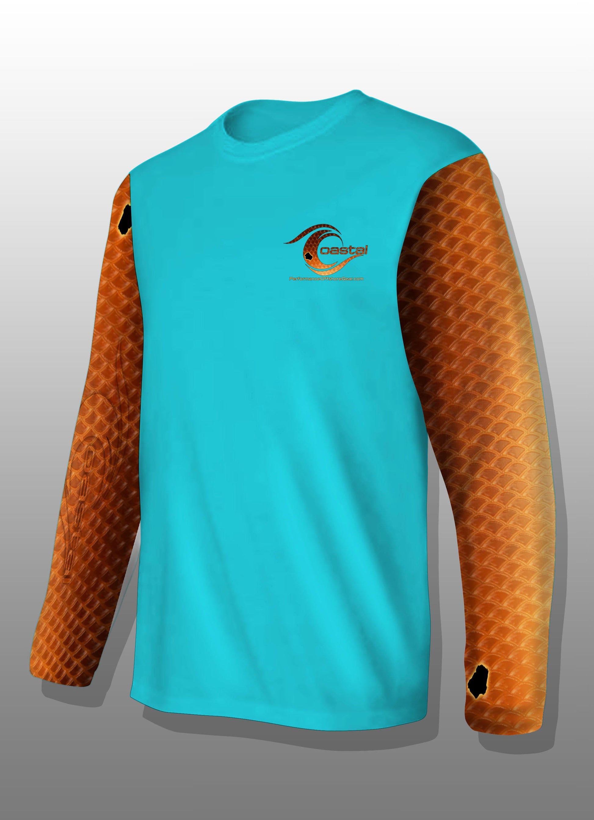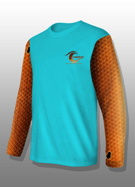 Coastal Performance Offshore Apparel is all you need for a long day on the water. We work, live and relax in Beautiful Southwest Florida and our active lifestyle has been a key driver in us developing a new twist for your everyday fishing and lifestyle apparel. Our performance fabric is UV-50, Moisture Wicking, Anti-Microbial and Lightweight. All of our custom designs are Dye Sublimated so the color will be vibrant for years to come. Our Performance fabric is 100% Polyester and Machine washable for effortless care. Left sleeve Logo and website verbiage is inverted.