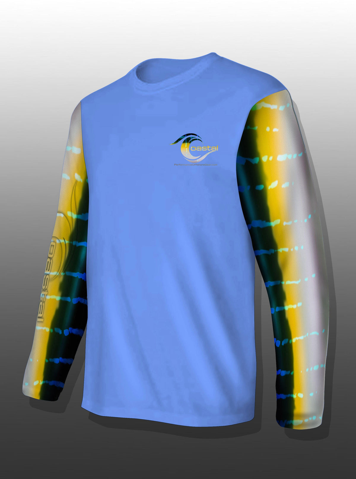 Coastal Performance Offshore Apparel is all you need for a long day on the water. We work, live and relax in Beautiful Southwest Florida and our active lifestyle has been a key driver in us developing a new twist for your everyday fishing and lifestyle apparel. Our performance fabric is UV-50, Moisture Wicking, Anti-Microbial and Lightweight. All of our custom designs are Dye Sublimated so the color will be vibrant for years to come. Our Performance fabric is 100% Polyester and Machine washable for effortless care. Left sleeve Logo and website verbiage is inverted.