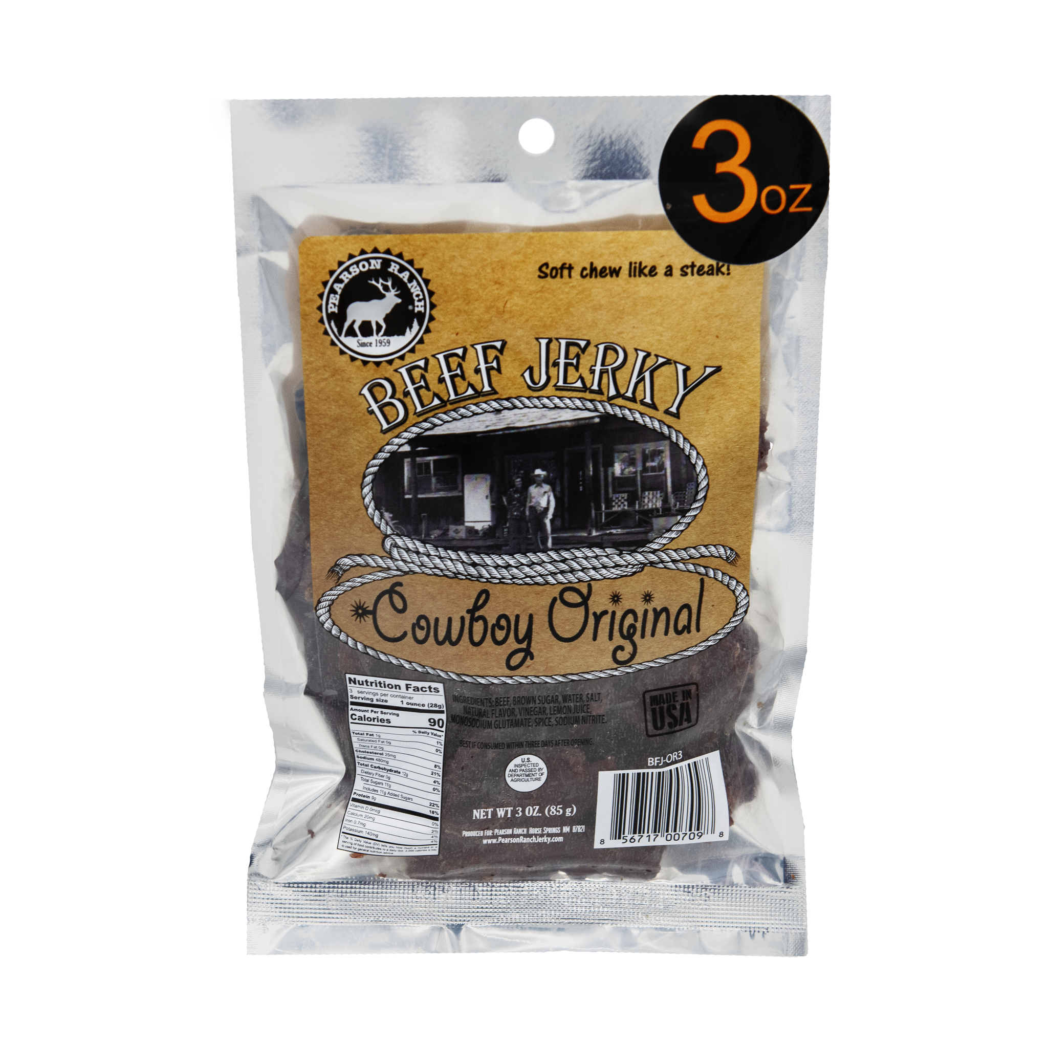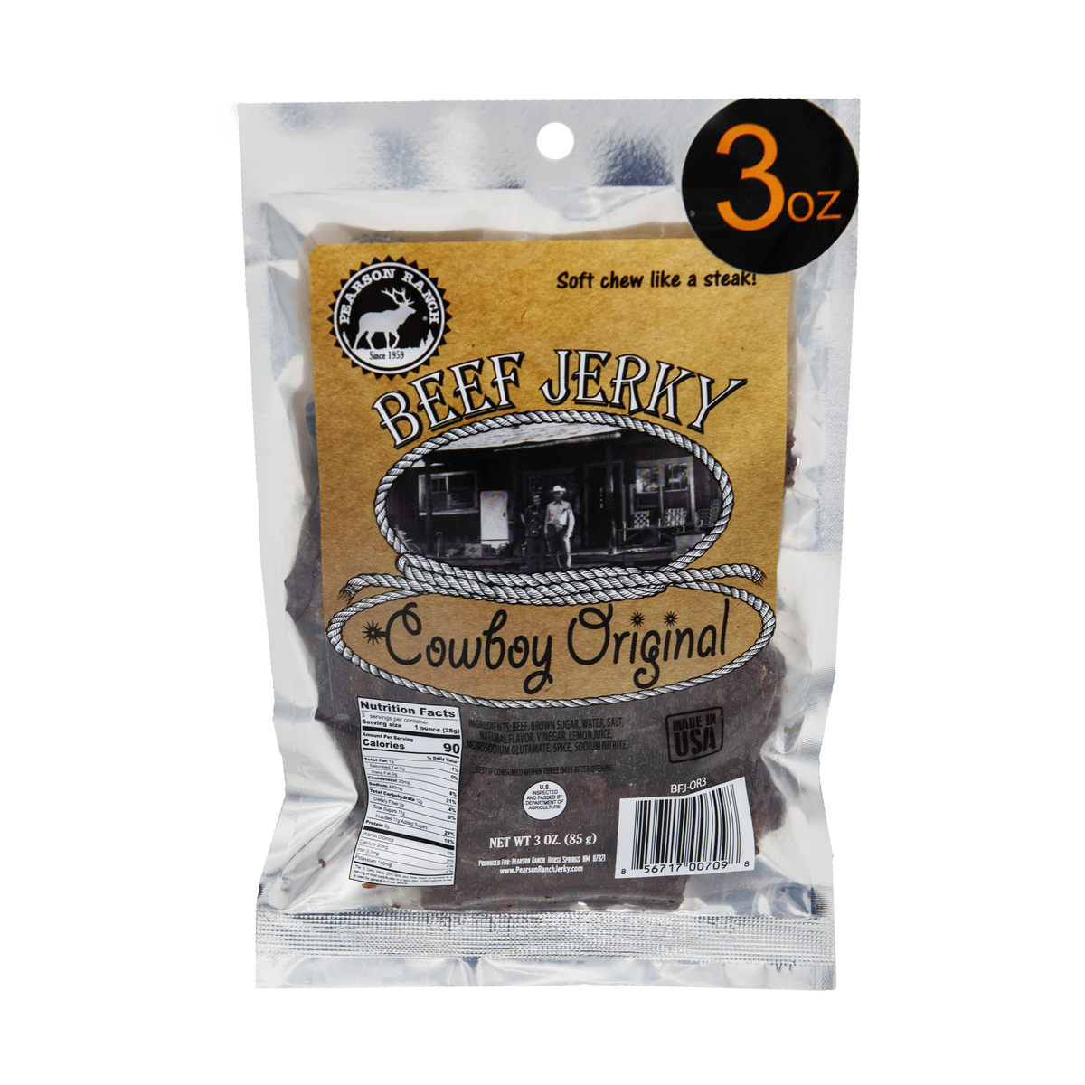 Pearson Ranch's Cowboy Original 100% beef jerky is made from the freshest, high quality meats available. Our classic, full flavor, tender cut beef jerky has a delicious savory taste that will leave you wanting more.