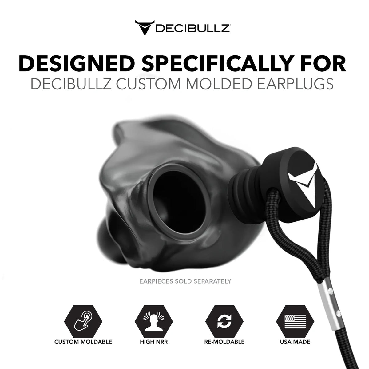 Enhance your Decibullz Custom Molded Earplugs with our specially designed premium earplug lanyard, ensuring your earplugs are always within easy reach. This convenient lanyard attaches seamlessly to any Decibullz Moldable Earpiece, allowing for comfortable around-the-neck wear. The simple process of removing the back plugs from your earplugs and inserting the lanyard plug makes it an ideal accessory for those who frequently use their earplugs and appreciate quick access and security against loss.