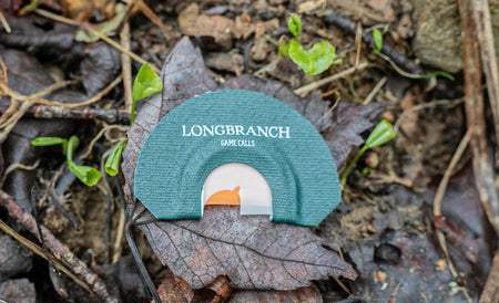 You asked, and we made it happen! This is our cutter call. Our cutter call recipe consists of 3 reeds of latex. There is one heavier top reed followed by two reeds of orange medium thickness latex, stretched to a medium side tension. This call excels at producing loud cutting and yelping of an excited hen. A kee-kee run can also be achieved by channeling air across the right side of the call.ย
