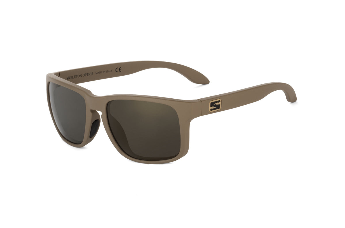 Decoy Coyote Tan Edition Sunglasses - Venture beyond the conventional with the Decoy Coyote Tan Edition sunglasses. Defy the ordinary, seize the extraordinary. An emblem of rugged style and trailblazing performance. Embrace the wild with our earthy tan frames, accentuated with the special bronze Skeleton shield on the temples, these glasses are crafted to make a statement and tackle adventures.