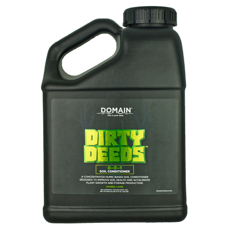 DIRTY DEEDS™ SOIL CONDITIONER IS A ONE OF A KIND CONCENTRATED HUMIC BASED SOIL ADDITIVE DESIGNED TO IMPROVE SOIL HEALTH AND ACCELERATE PLANT GROWTH AND FORAGE PRODUCTION. DIRTY DEEDS CAN AID IN MICRONUTRIENT UPTAKE AND FORMS AGGREGATES IN SOIL TO INCREASE WATER INFILTRATION, REDUCES DROUGHT STRESS, REDUCES NITROGEN SALT INJURY, AND STABILIZES NITROGEN. DIRTY DEEDS IS EXCELLENT FOR ALL SOILS - ESPECIALLY POOR SOILS, SANDY, SILT AND CLAY LIKE SOILS. THE SEAWEED EXTRACT CONTAINED IN DIRTY DEEDS CAN HELP ACCELERATE THE HEALTH AND GROWTH OF PLANTS AND CAN HELP IMPROVE BOTH PLANT GROWTH AND TUBER SIZE.