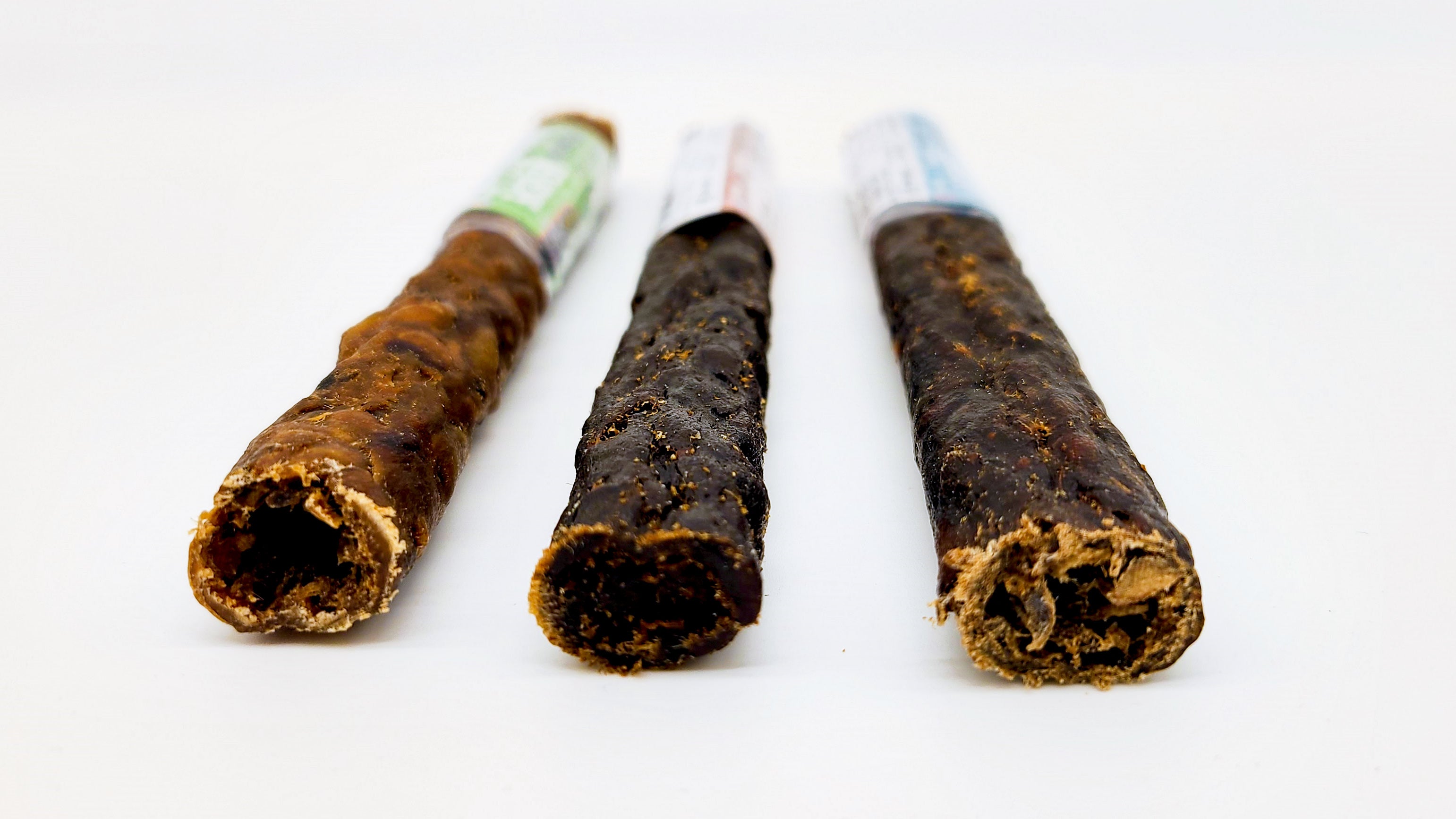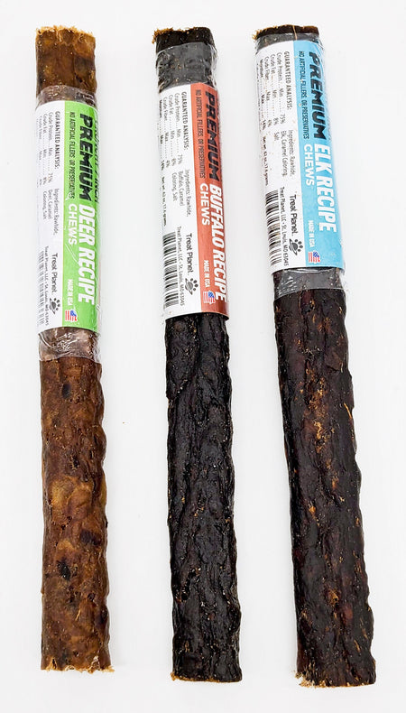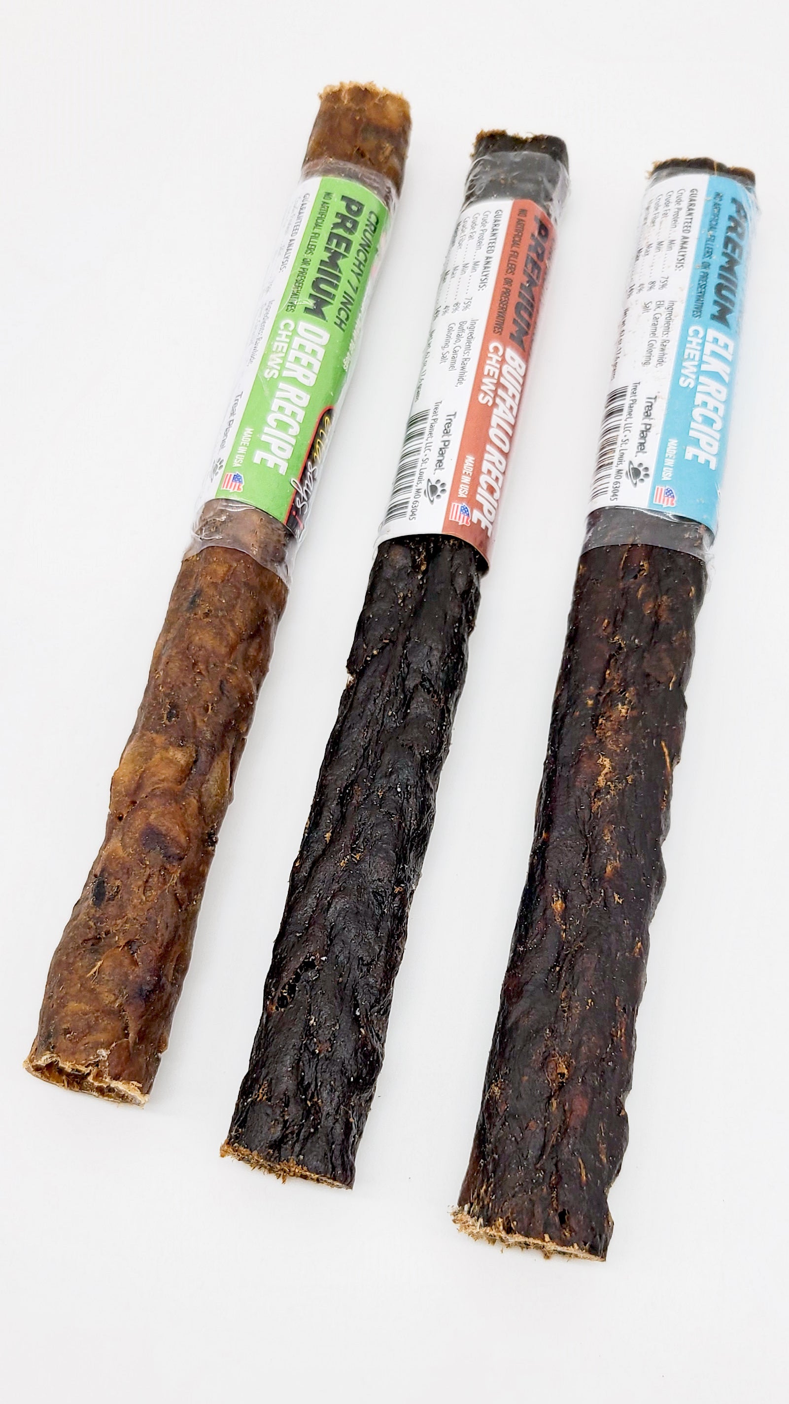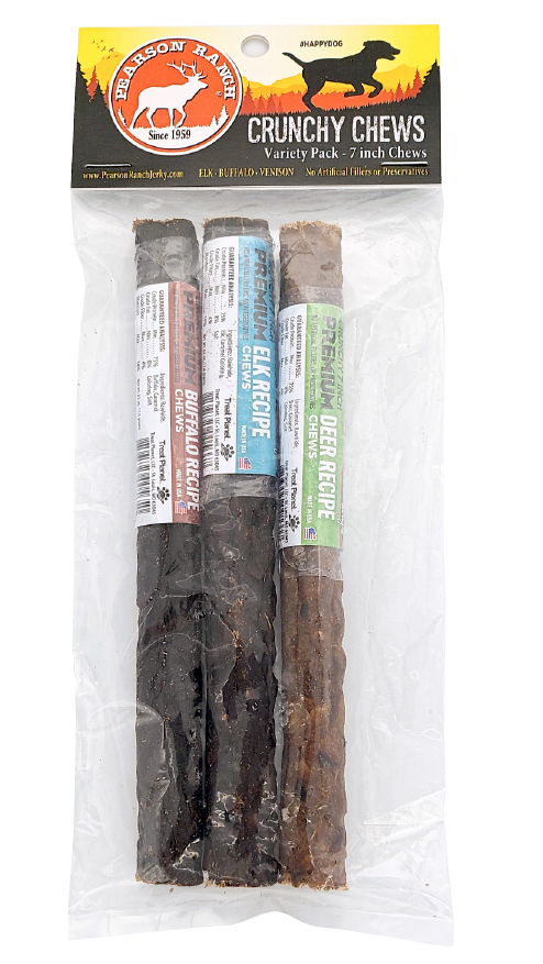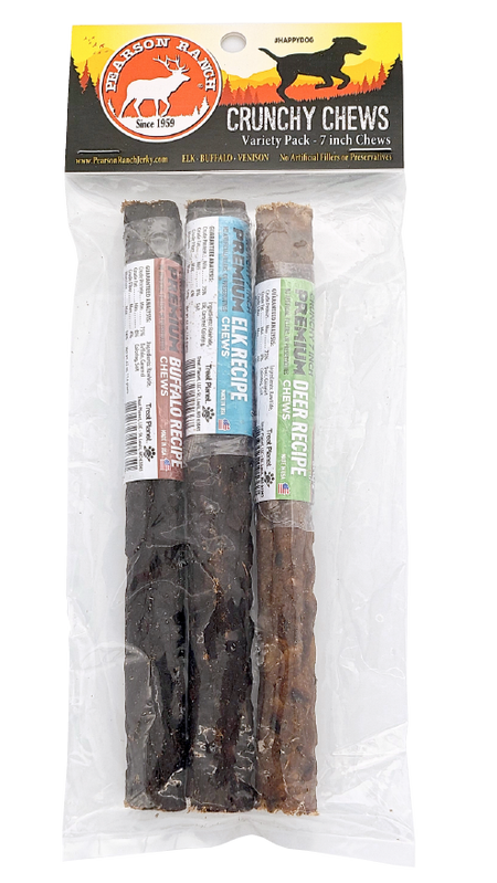 Pearson Ranch Jerky's Dog Chews are a testament to the brand's commitment to quality, extending their passion for premium meats to our loyal canine companions. Crafted with the same dedication to excellence as their human-grade jerky, these dog chews are a wholesome and flavorful treat for man's best friend. Made from all-natural ingredients without artificial additives or preservatives, these chews prioritize the health and well-being of dogs. The satisfying chewiness not only makes them a delightful snack but also promotes dental health by helping to reduce plaque and tartar. Pearson Ranch Jerky's Dog Chews are a thoughtful way to show love to your furry friend, providing a tasty and nutritious reward that aligns with the brand's commitment to delivering high-quality, wholesome products for both pets and their owners. Available in deer, bison, or venison.