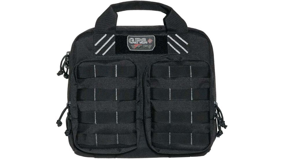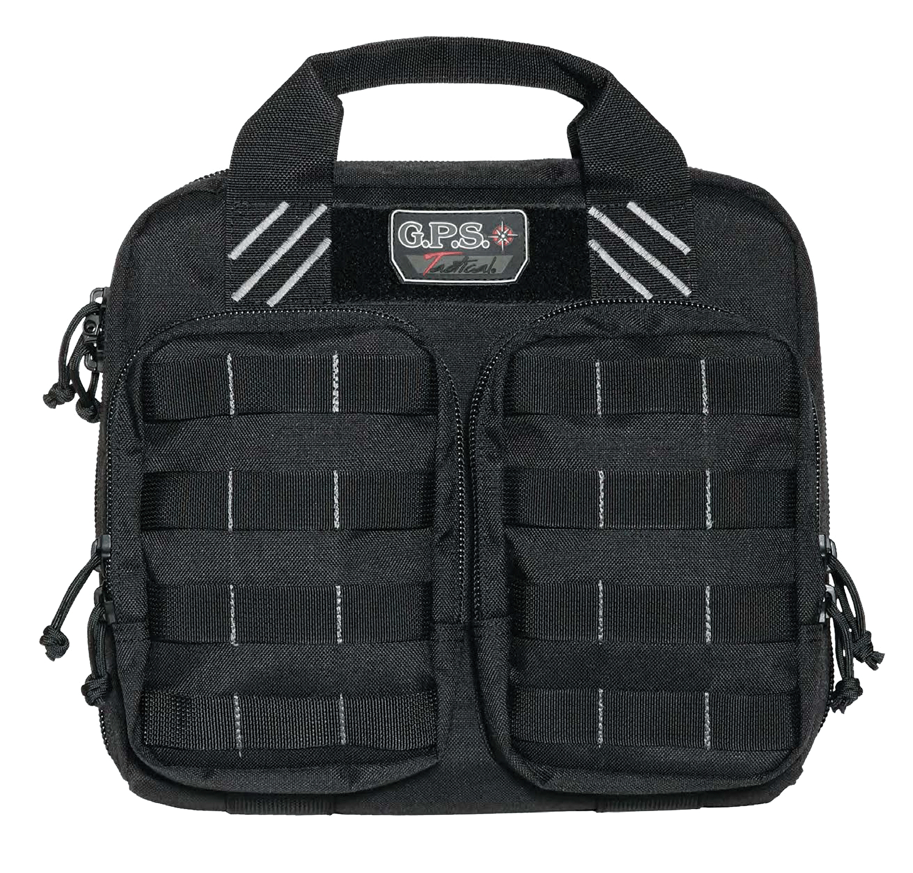 The tactical double +2 pistol case has a double quilted inside storage area measuring 11"h x 12.5"w, for double handgun storage on each side. It also has twin front ammo pockets with triple-stitched molle webbing with a ykk locking zipper on the main compartment for legal transport. Visual id storage areas have pockets for magazines and velour-lining to protect glasses and ear pieces. The tactical double +2 pistol case has a hook and loop gps tactical logo patch, removable to personalize with a name or club placard. The gps tactical line of gear is made of 1000 denier heavy-duty material with dupont teflon coating for grime resistance and is sewn with mildew- and rot-resistant nylon-based thread using box and bar tack reinforced stitching in all critical areas.