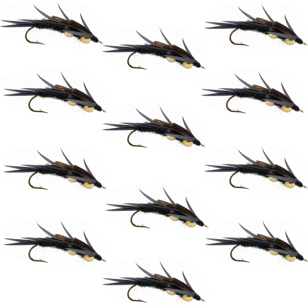 Set of 12 hand tied Double Bead Black Stone Fly Nymph Flies - Hook Size 8