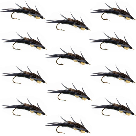 Double Bead Black Stone Fly with Black Biot Legs - Stonefly Wet Fly - 1 Dozen Flies Hook Size 8