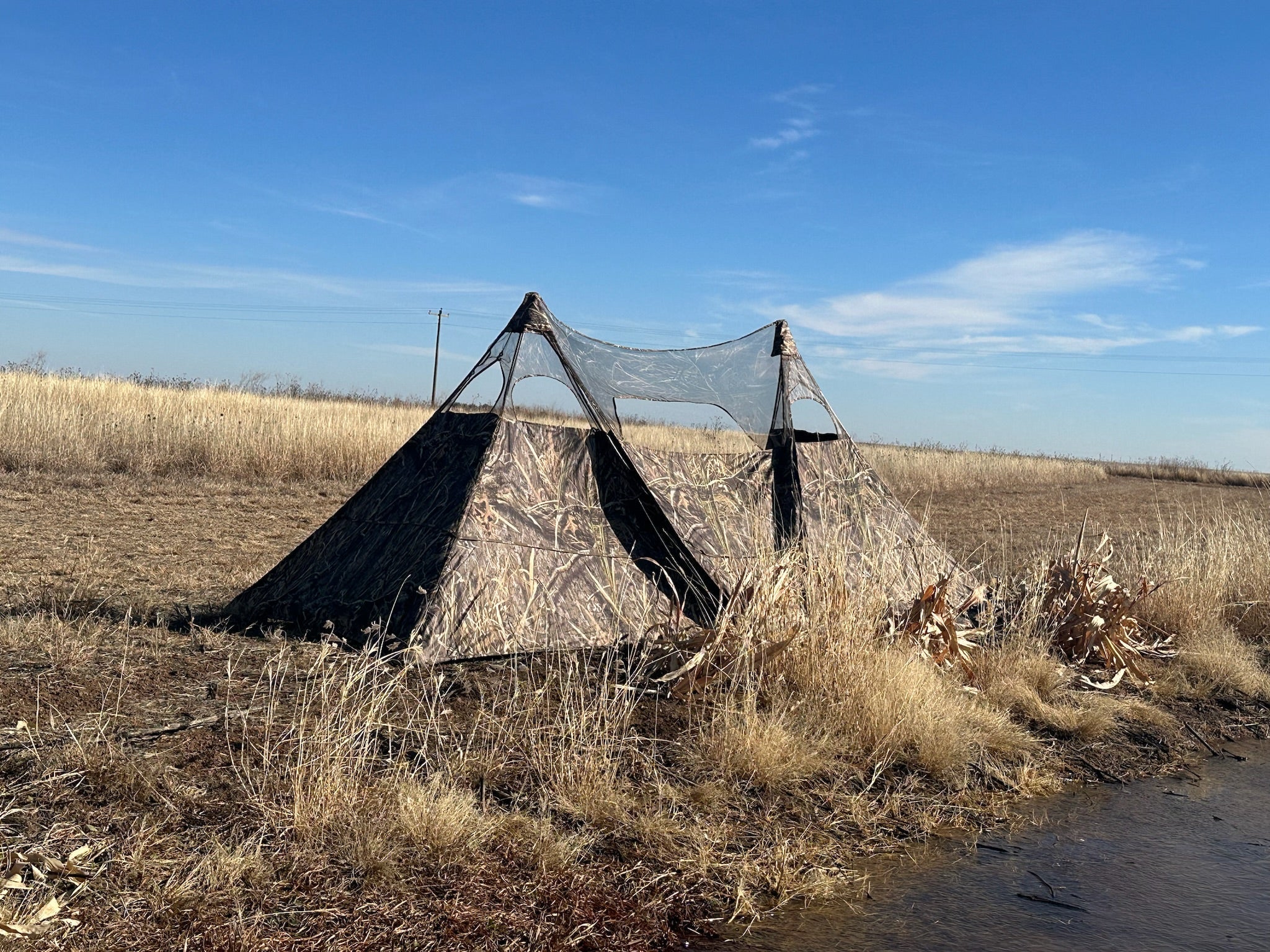 Weighing under 8 pounds, the Nukem Double Up Panel XL is a lightweight and portable solution that can be set up in minutes creating a lightweight mobile panel blind. When pairing two Nukem Double Up Systems back-to-back you can create a versatile A-frame blind, perfect for waterfowl hunters looking to blend into brush banks or fields.