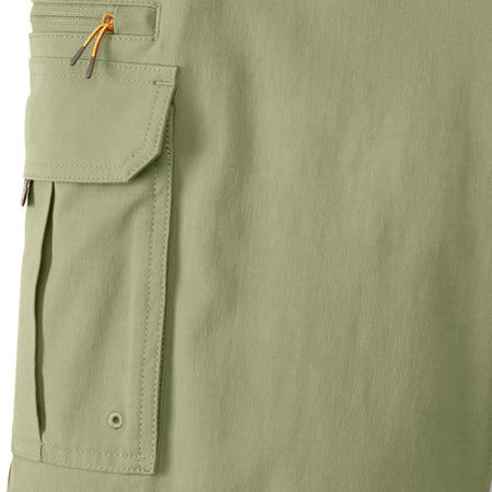 • Rip-stop Cargo Shorts & Pockets: Flat front and a plethora of pockets: gusseted cargo pockets on both sides for maximum capacity that flatten when not used, one zippered drop in pocket behind right cargo pocket for cell phone (7 inches deep), two grommets in the cargo pockets to let out the water or sand. and zippered rear pockets to keep your wallet secure. 9-inch inseam.