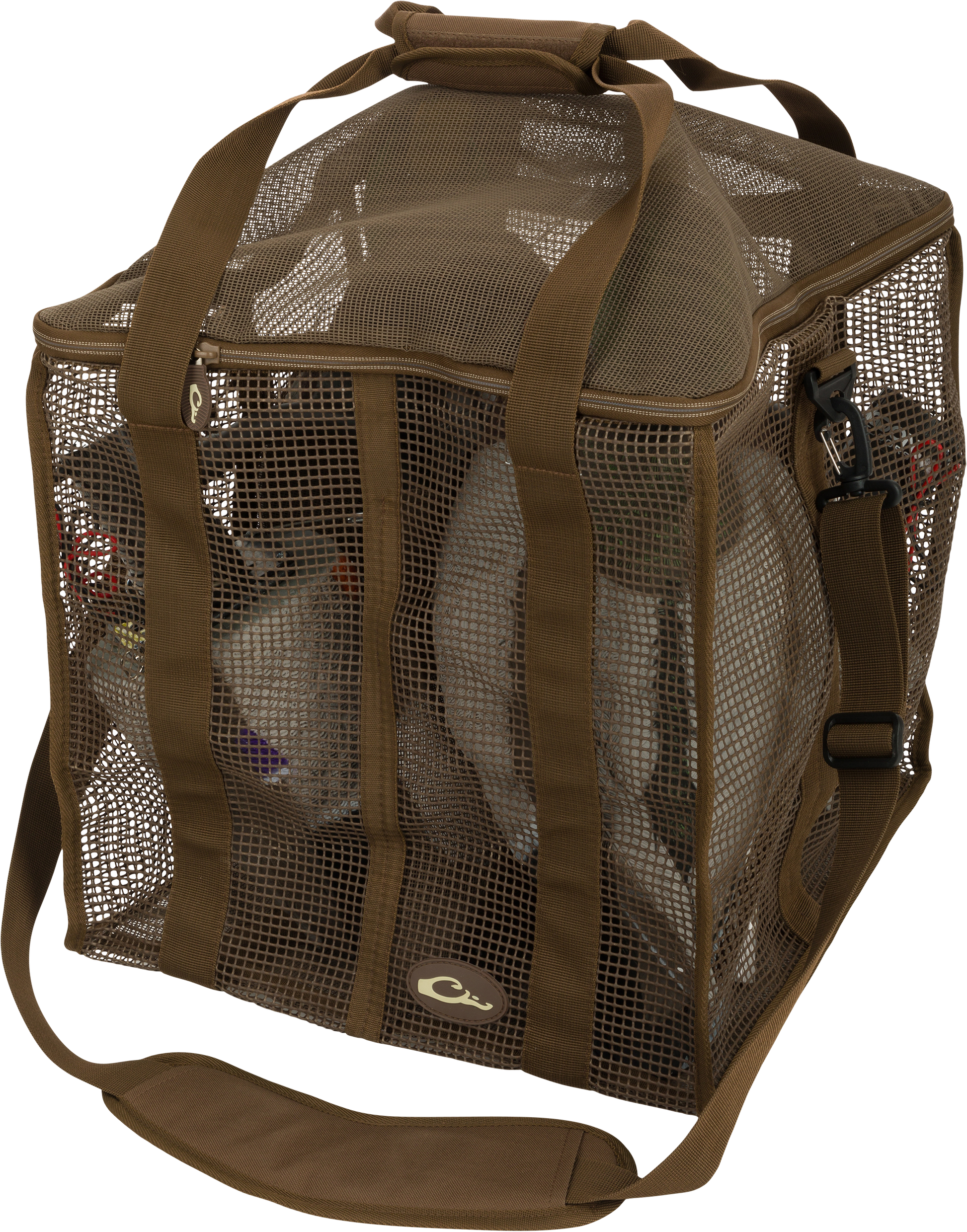 The Drake Waterfowl Floater 4-Slot Motion Decoy Bag is built to protect and organize your motion decoys while making transport easy. Constructed from durable vinyl-coated mesh, this bag allows quick drainage and resists mildew for long-lasting use in wet conditions. The brown finish blends well in the field, while the zippered closure keeps your decoys secure during travel and storage.
