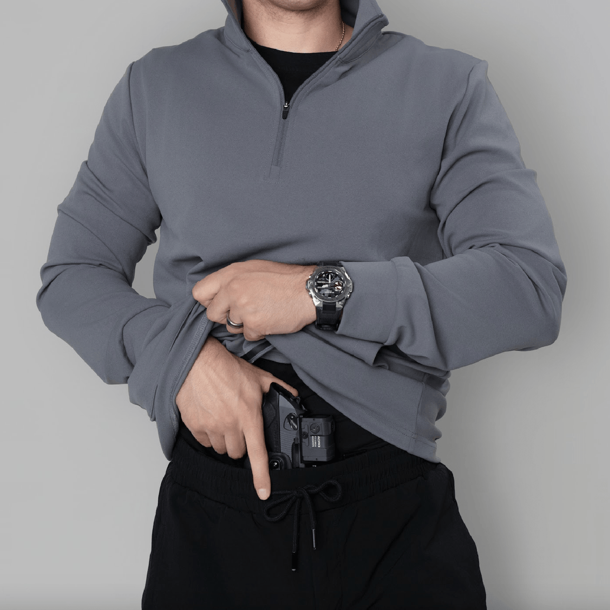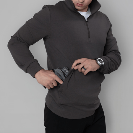 Please Note: The Durable Quarter Zip is designed to enhance your concealed carry setup. Always use a properly-fitting IWB holster affixed to a supportive waistband.