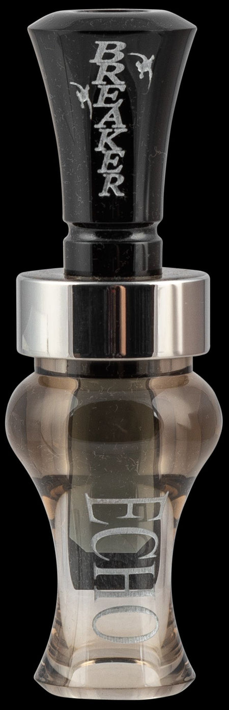 The acrylic echo breaker call is designed with extra punch to break out those high flyers.This call will also come down to a soft nasty nasally sound.The breaker call is a single reed that handles a lot like our double reeds.