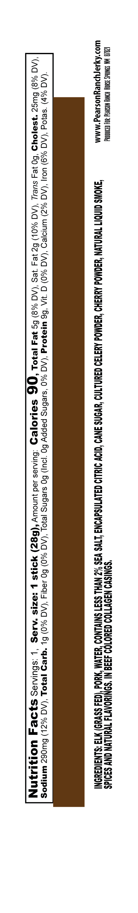 The snack stick that put Pearson Ranch Jerky on the map. Hickory smoked and delicious, this low-fat, low carb, high-protein elk snack stick is likely one of the healthiest things you’ll eat all week. These individually wrapped elk sticks are perfect to pack in a lunch box, purse or backpack!