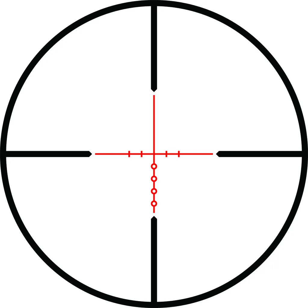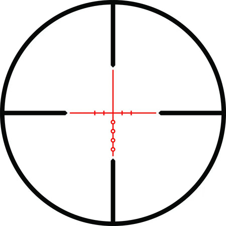 The Vudu X Series of Rifle Scopes is crafted from robust aircraft-grade aluminum, boasting a daylight-bright illuminated reticle for precision aiming. It's equipped with a magnification power ring marked with laser-engraved numbers and a removable throw lever for rapid magnification changes. The scope's capped turrets are designed to prevent accidental adjustments, ensuring maintained accuracy. Its high-quality glass provides a clear view, and the generous eye relief offers comfortable use, making the scope suitable for engaging targets at close to medium ranges.