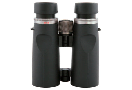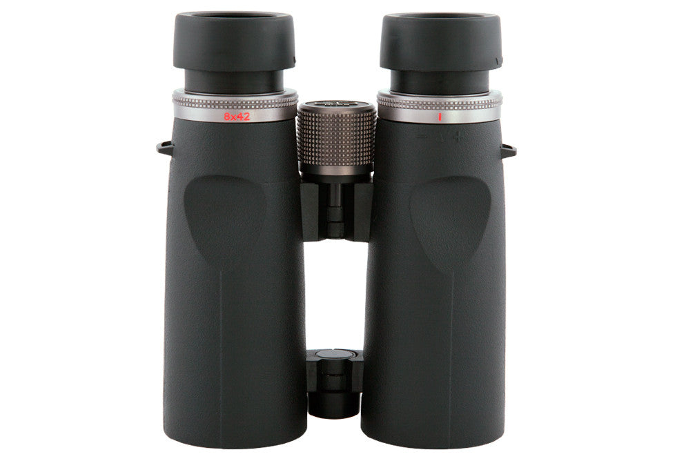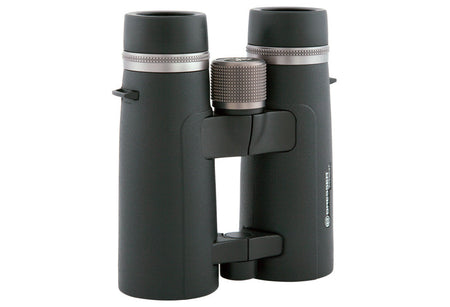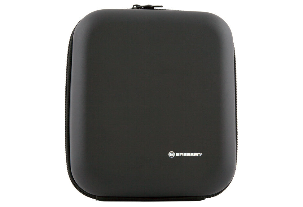 The commitment to quality that is evident in the optics is also reflected in the construction of Bresser’s Everest Binoculars. The roof prism layout makes for a slender design that is easy to manipulate for proper eye distance. The user’s thumbs can settle perfectly into contoured indentations that are positioned for optimal support, while sleek rubber armor protects the device and makes it easy to grip. The central focusing wheel rotates smoothly and is textured to facilitate subtle adjustments. Twist-up eyecups guard against stray light and are especially useful for those who wear glasses. Located near the right eyepiece, the diopter adjustment wheel clicks easily into place to ensure that both eyes achieve proper focus. Instructions are included for adjusting these settings.