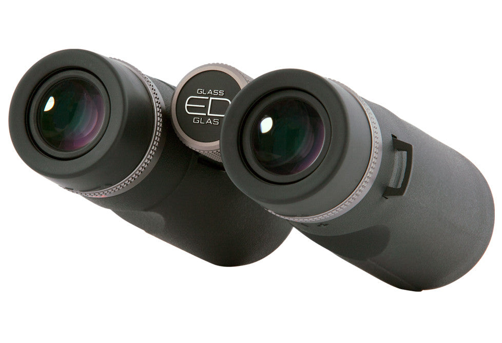 Housed in a sturdy molded case, the binoculars are solid but not heavy and include a tripod connection thread when extra stability is needed. The set comes with a cleaning cloth and a strap with a neck pad for extra comfort.