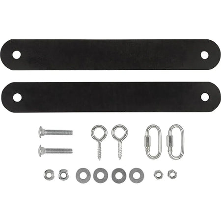 - Includes 2 die-cut rubber straps, 2 bolts, 2 eyebolts, 2 locking rings, 2 nuts, & 2 washers