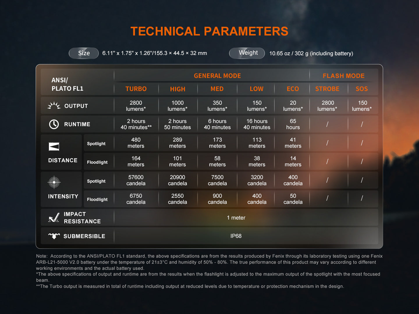 The Fenix LD45R flashlight is a cutting-edge tool designed for adventurers and professionals alike. Featuring advanced digital focusing technology, this high-performance flashlight allows for seamless adjustment between spotlight and floodlight, offering the perfect beam for any situation. With a powerful 2800-lumen maximum output and an impressive 1575-foot beam distance, the LD45R ensures that darkness never stands in your way. Its intuitive electronic single switch control provides easy access to all functions, including strobe and SOS modes for emergencies. The OLED smart display keeps you informed with real-time data on battery life and brightness settings, enhancing your overall user experience.