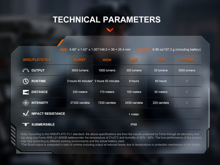 Built tough with A5051-T6 aluminum alloy, IP68 waterproof rating, and tungsten steel striking tips, the TK17 is drop-tested to 1 meter, making it ready for rugged conditions. The included ARB-L21-6000B USB-C rechargeable battery not only powers your flashlight but can also discharge to other devices, acting as a backup power bank in the field. A battery level indicator keeps you informed, while double springs provide strong battery suspension, perfect for absorbing recoil during weapon mounting. Compact, lightweight, and fiercely powerful, the TK17 is the tactical tool you’ll never want to be without.