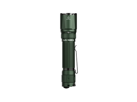 The Fenix TK20R UE Tactical Flashlight is an essential tool, offering a maximum output of 2800 lumens and 53,880 candela that ensures a reliable nighttime search and defense. With two modes - Tactical and Duty - and the ability to memorize and recall the last output and Strobe, it's easy to operate with just one hand using the new FlexiSensa control toggle. The battery compartment features a double spring design that absorbs external impacts and ensures uninterrupted power while the sleek design is available in four colors - Desert Camo, Tan, Tropic, and City Gray.
