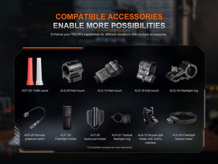 From tactical operations to night patrols, the Fenix TK21R is a high-output duty flashlight that professionals can count on. Available now at Fenix-Store.com, your trusted source for genuine Fenix gear.