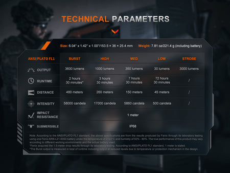 Designed for tactical efficiency, the TK21R includes an intuitive dual tail switch for seamless control of Instant Burst and Instant Strobe modes, ideal for momentary blinding or signaling in high-stakes environments. The hidden USB-C charging port and 1.5-hour fast-charging capability keep you ready for anything, while the battery level indicator ensures you’re never caught off guard.