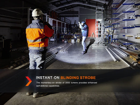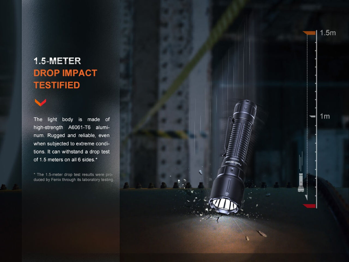The Fenix WF26R is always available with its convenient charging cradle. Mount it on your workbench, wall, or to take on the go with the magnetic charging cable. This flashlight has two dual tail switches for easy access to four brightness levels up to 3000 lumens plus two flashing modes. A long throw of nearly 1500 feet is ideal for a range of jobs, and the 44-hour max runtime with battery-level indicator makes it perfect for extended use. Crafted from aircraft grade aluminum, the WF26R passes a 1.5 meter drop test and IP68 waterproof standard (30 minutes for 6 feet). Rely on this powerful, resilient tool for any difficult task.