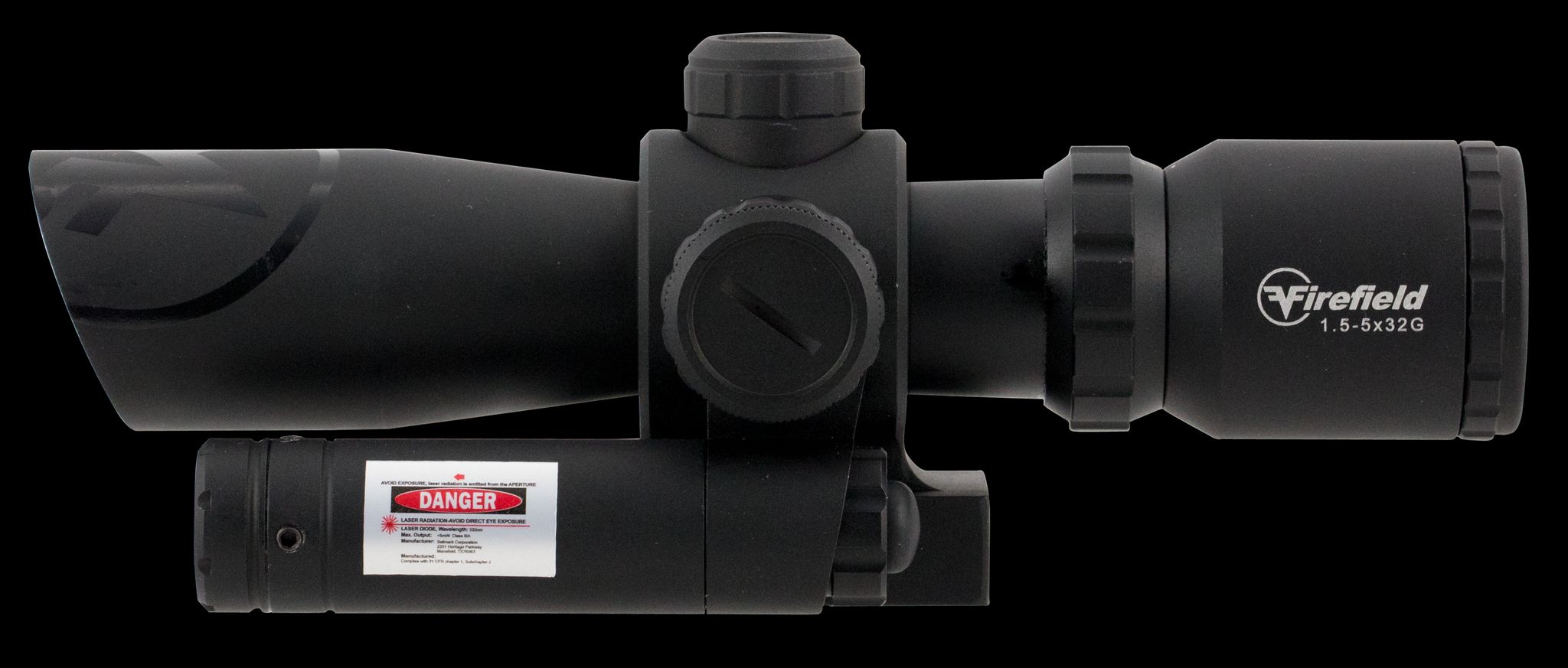The firefield barrage riflescope w/green laser features 5mw 532 class iiia green laser, locking windage/elevation turrets, multi-coated optics, adjustable objective and is waterproof, shock proof and fog proof.Includes mounting rings, lens caps and lens cloth.From close to mid-range the firefield barrage riflescope is the ideal ready for anything optic.Built reliable for the long haul, barrage riflescopes feature black anodized aluminum tube, 2 piece mount, green fully multi-coated lenses, anti-reflective glass, precision illuminated red/green mil-dot reticle and 100-hr battery life that get you on target and keep you there even in low light.The barrages useful reticle includes bullet drop compensation out to 500 yards for 55gr.223.Includes cleaning cloth and battery.