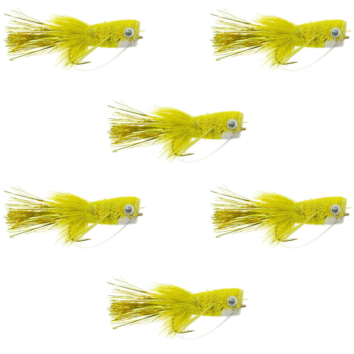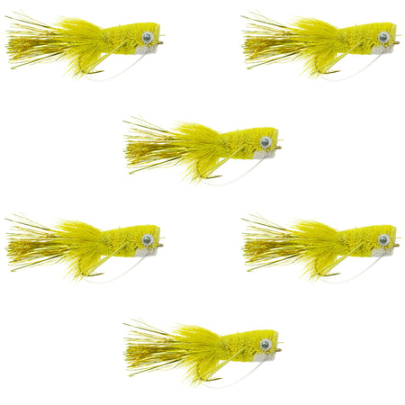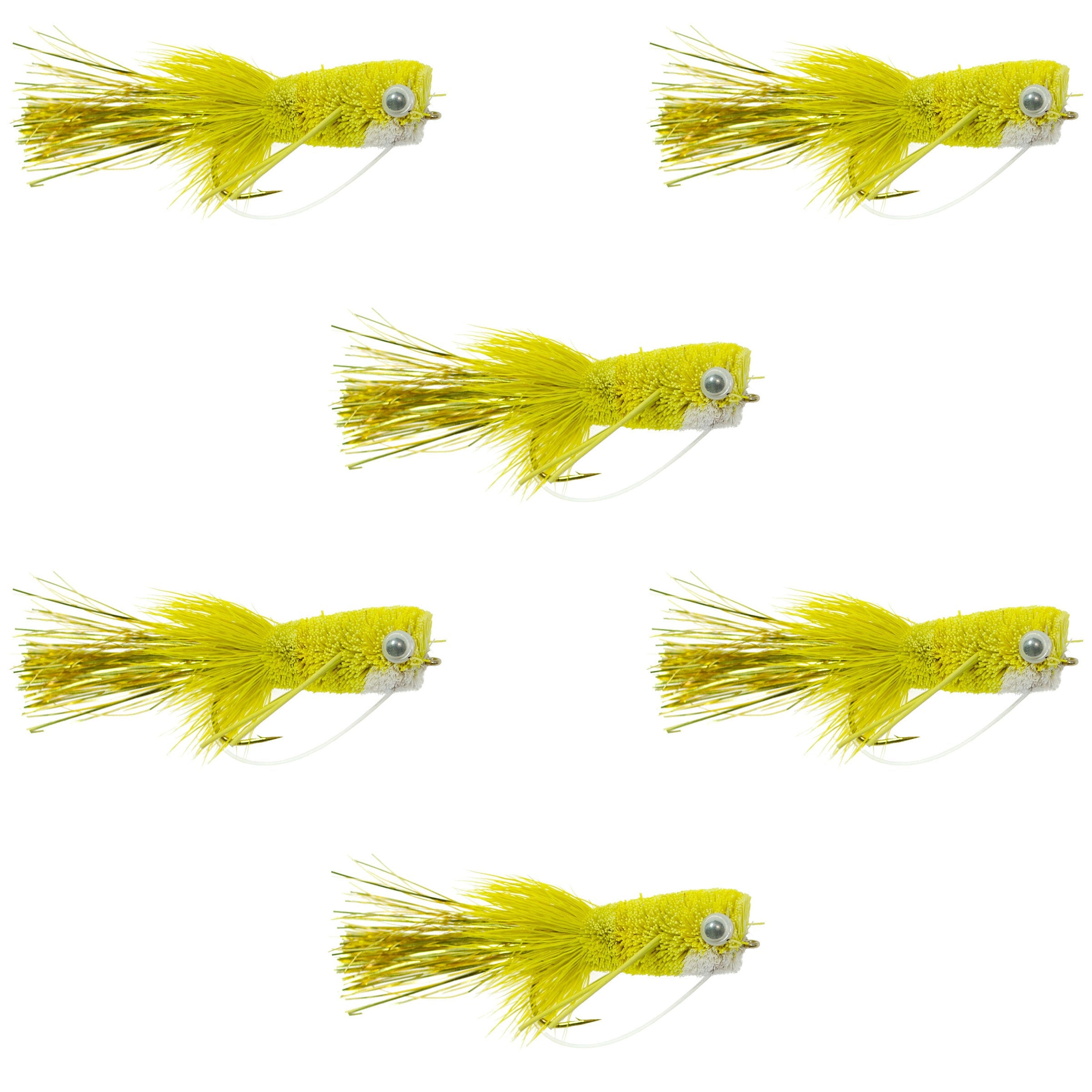 Flashtail Bass Popper 6 Flies Size 8 - Yellow Bass Fly Fishing Bug Wide Gape Bass Hooks With Weed Guard