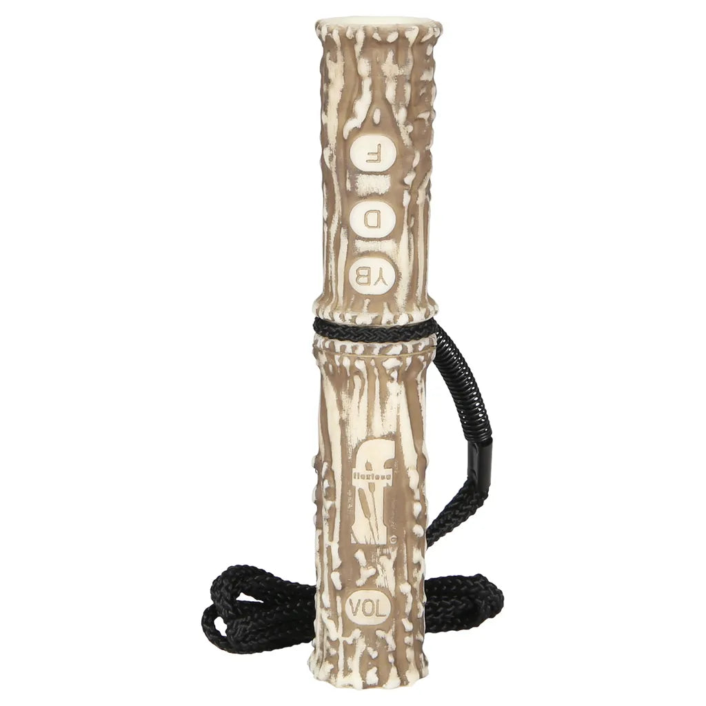 Compact deer call is easy to carry. Simply blow the call for buck grunts or hold down the buttons for fawn bawls, doe bleats, and young buck grunts. Flexible body allows for changing of volume and tone.