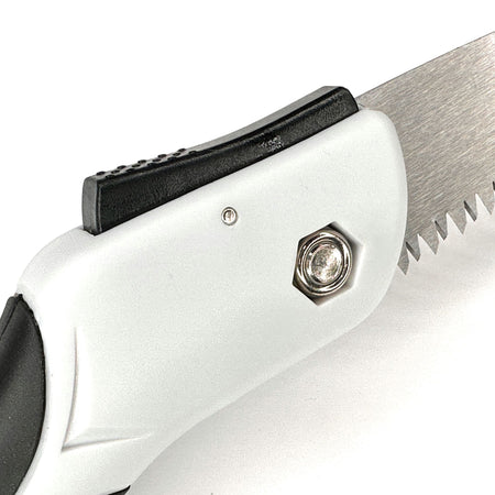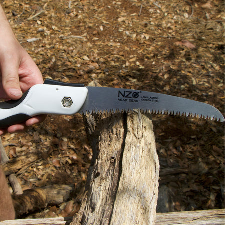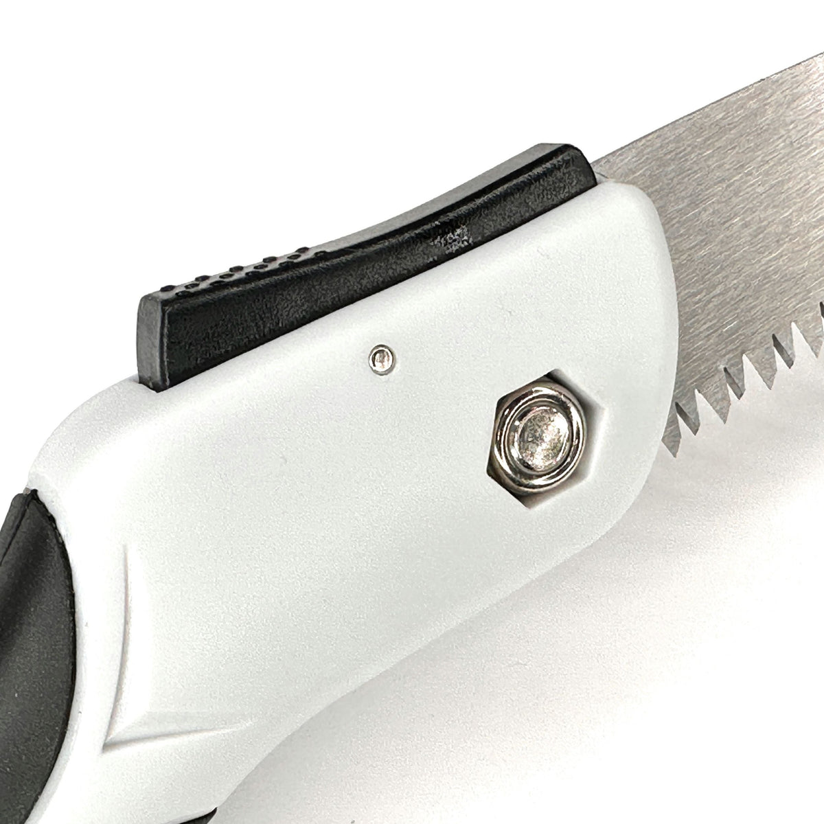 Double action razor tooth folding saw. Includes a high carbon steel blade and soft comfort handle. Excellent tool around the campsite. Offered in both 7-inch and 10-inch length blade.