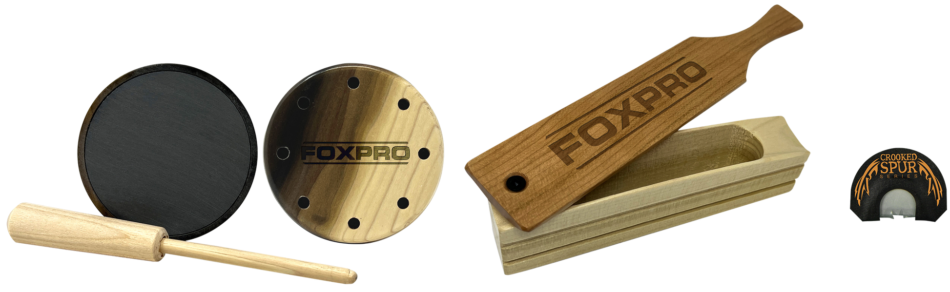 FOXPROs Turkey Combo pack caters perfectly to newcomers and seasoned hunters alike, providing a variety of essential calls. This set features a box call, diaphragm call, and pot call.