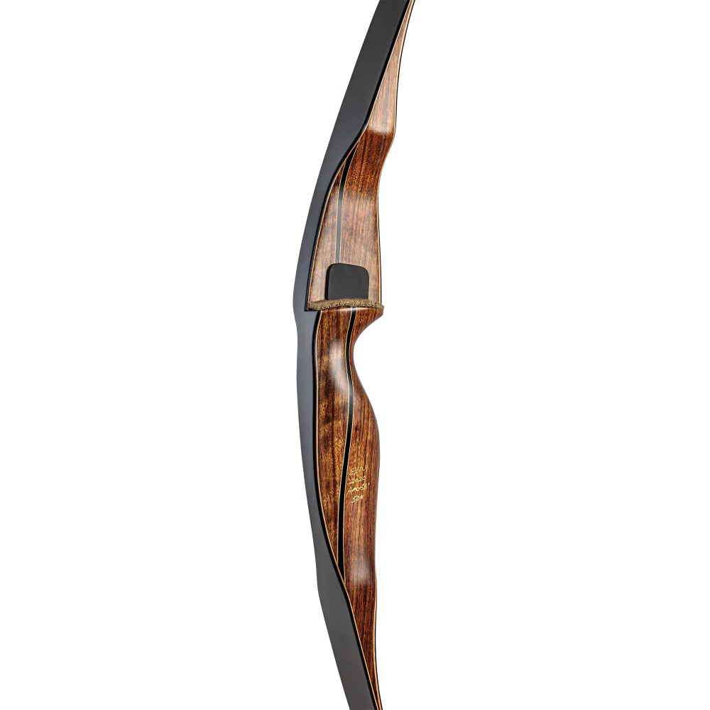 Bear Archery's Super Grizzly features two layers of lamination in the limbs for a better-feeling, better-shooting bow without hand shock. The crowned, cut-on center arrow shelf includes a leather side plate and bear hair arrow rest.