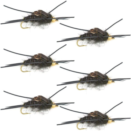 Set of 6 hand tied Gold Bead Kaufmann's Stone Fly Nymph Flies - Hook Size 8