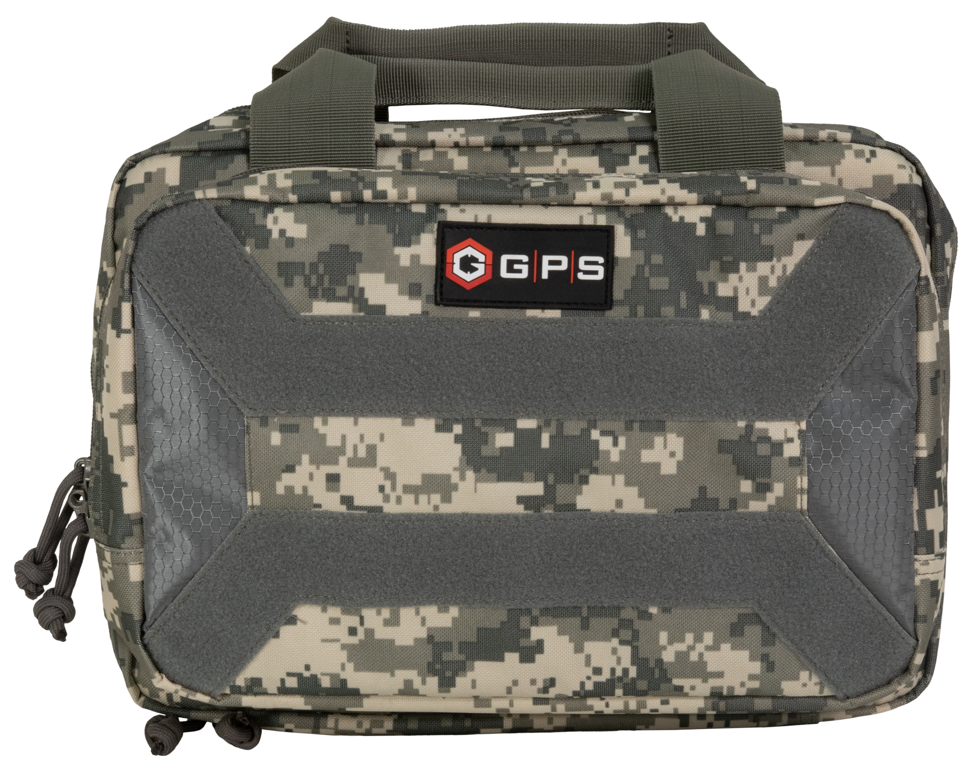 The pistol case features a hook & loop front panel, cushioned pistol compartments, and enhanced knitted elastic mag slots which fits model sized mags. It is constructed of 600d polyester with lockable zippers, lockable admin pocket, and lays flat. The pistol pocket has dimensions of 12.50" l x 7.50" h, enhanced magazine slots are 8.50" h x 1.75", and the front pocket is 12" l x 7.50" h x 2"w.