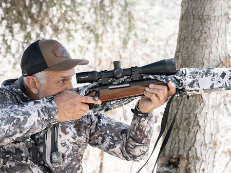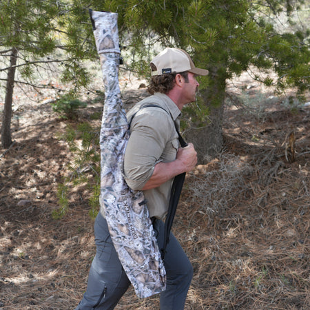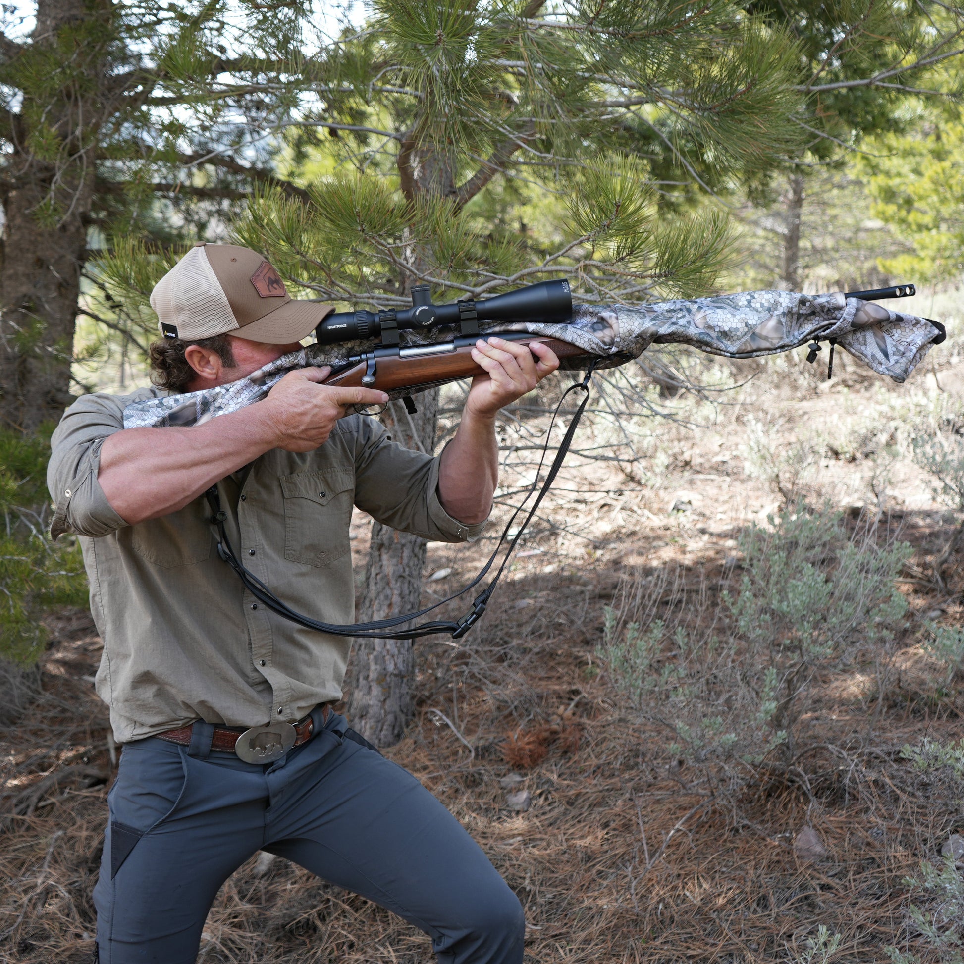 At Alpine Products, we understand the importance of having efficient equipment and accessories during your hunt. That's why we've designed the GunSlicker2™ rifle cover specifically for hunting. With its barrel port feature, you can conveniently slip your barrel through and tighten it, allowing you to keep the cover on even while taking your killshot. The GunSlicker2™ also boasts a quick-draw adjustment cord, enabling easy one-hand size adjustment.
