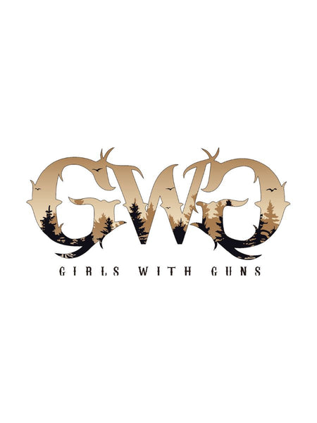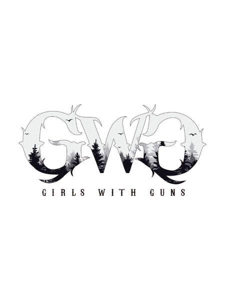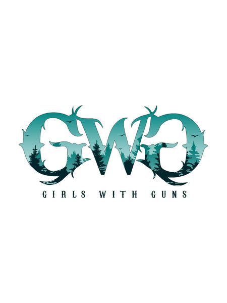 Bring a touch of the wilderness wherever you go with our Evergreen Horizon Sticker! Featuring the classic Girls with Guns logo, this unique design incorporates a sublimated scene of evergreen trees and soaring birds, creating a serene and natural vibe.