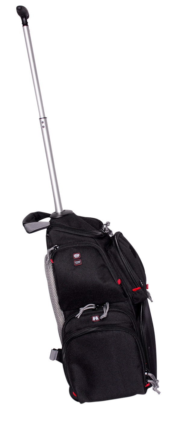 This rolling handgunner backpack design allows the avid handgun shooter a way to transport handguns, 12 extra magazines, ammo, shooting glasses, ear protection, targets, stapler, tape, binos, shooting mats, and cleaning supplies all in a compact backpack. The visual id storage system separates pockets that store most frequently used items for added protection and easy retrieval. An additional unique feature is the inside storage cradle that is made of high density foam which slides in and out of the lower compartment. This foam cradle was designed to hold 4 medium to small size handguns in a vertical format. The vertical format allows for ease of use at the range and added protection from 360 degrees.