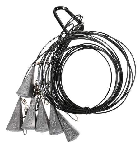 One of the easiest ways to anchor your decoys.Lines will not tangle and when its time to pick-up, just grab the looped end of the cord and it will slide the anchor up around the decoy.Nylon stiff non-tangle line.