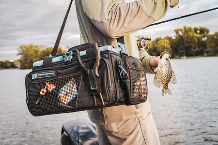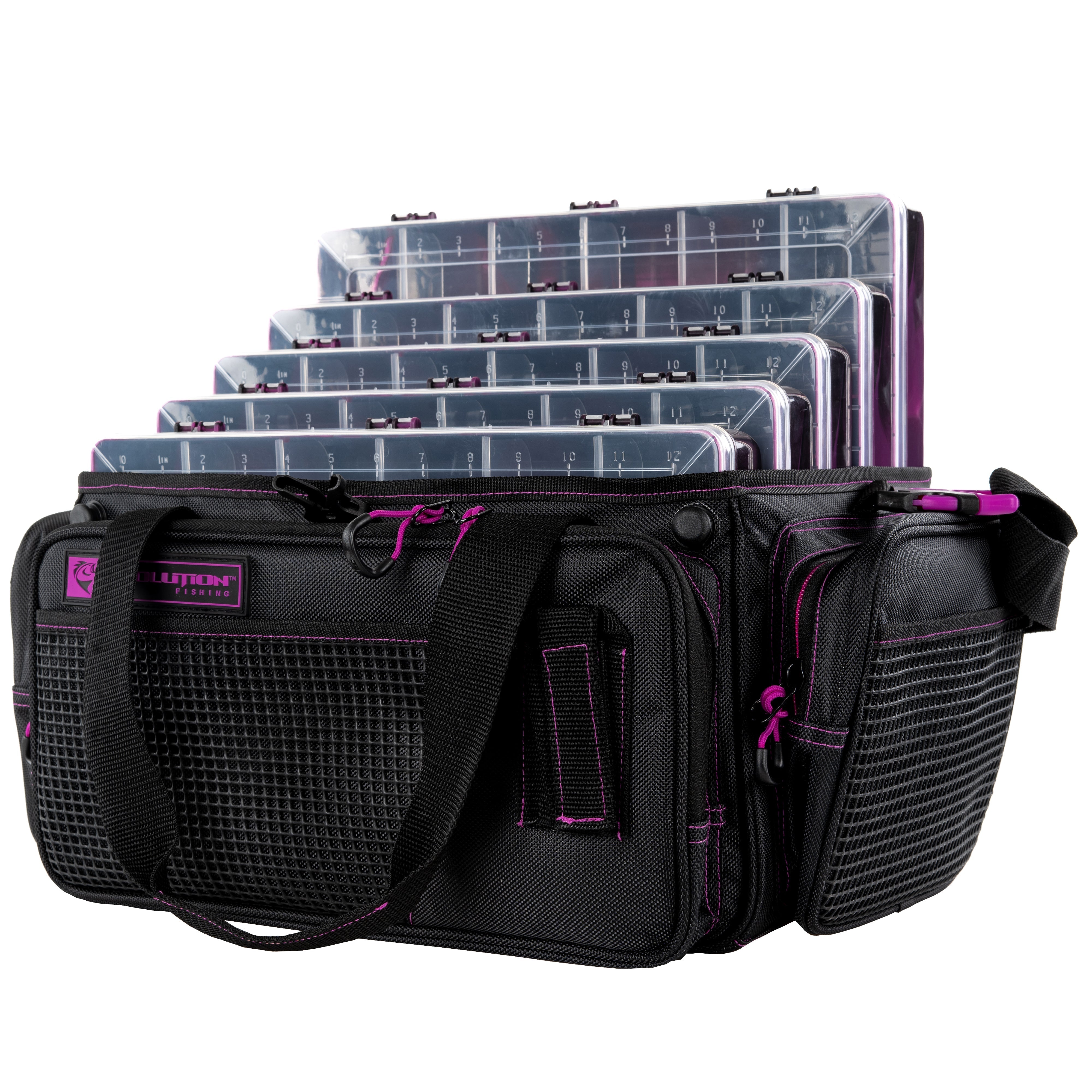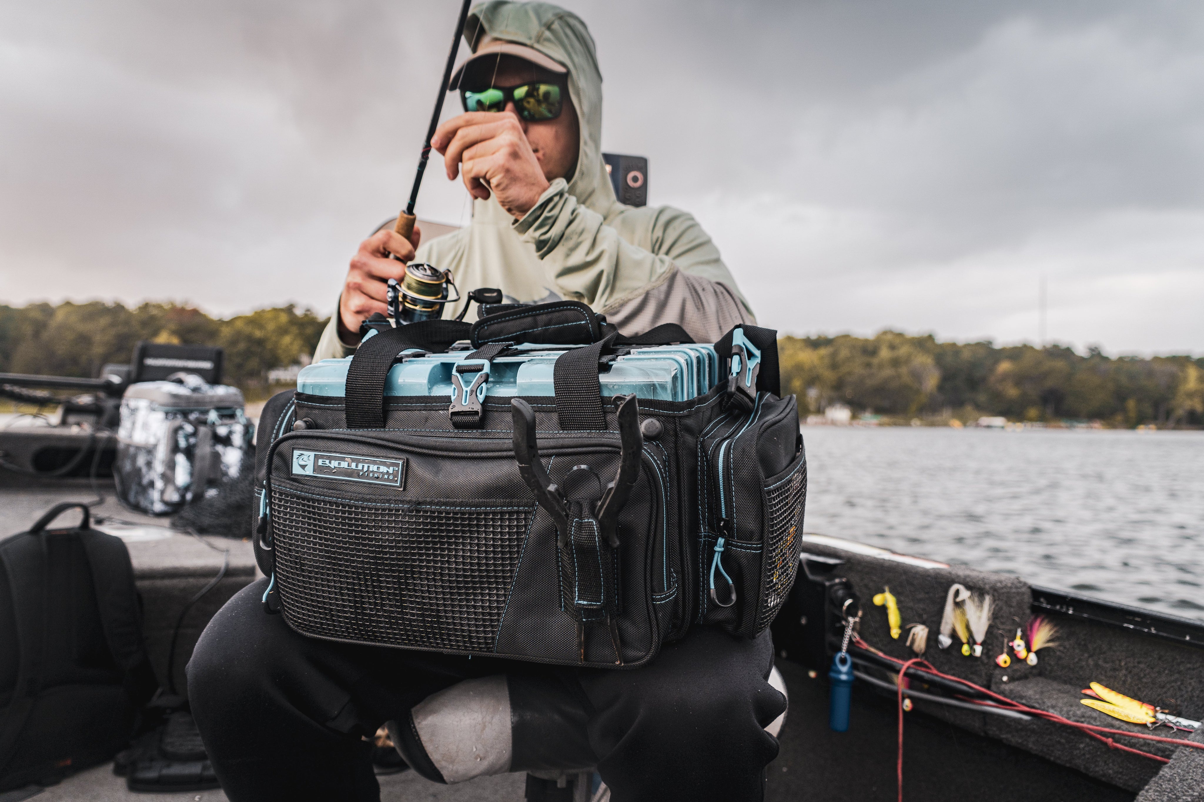 With its open top feature and extremely rugged wear-resistant 1680D construction, the Drift Series Topless Horizontal Tackle Bags deliver the quality and functionality that Evolution Fishing is known for. These Drift Series Tackle Bags have an innovative large mouth, open top feature that provides quick and easy access to all your trays. Slide your trays in horizontally with this version of the tackle bag. The integrated tie down Y-Strap will secure your trays in the bag, and in case of stormy weather, these bags are equipped with an integrated rain fly that you can zip up and store away when not in use. With 3 large exterior storage pockets and 4 rubber mesh slip pockets, you’ll have plenty of room to store all your accessories. It’s also equipped with a plier holster, side pocket line spool feed, and a non-slip, waterproof bottom with integrated drainage grommets. Transporting these tackle bags will be a breeze with the adjustable, removable shoulder strap and the padded top carry handle. With the capacity to hold up to 5 tackle trays, it’s more than capable of holding all your fishing essentials. Each tackle bag will include 5 matching color Drift Series Tackle Trays.
