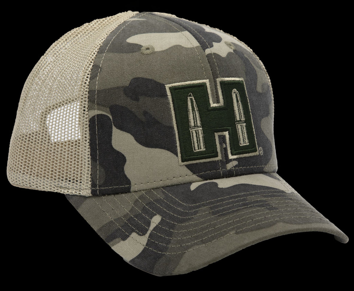 Camo mesh cap with hornady logo.